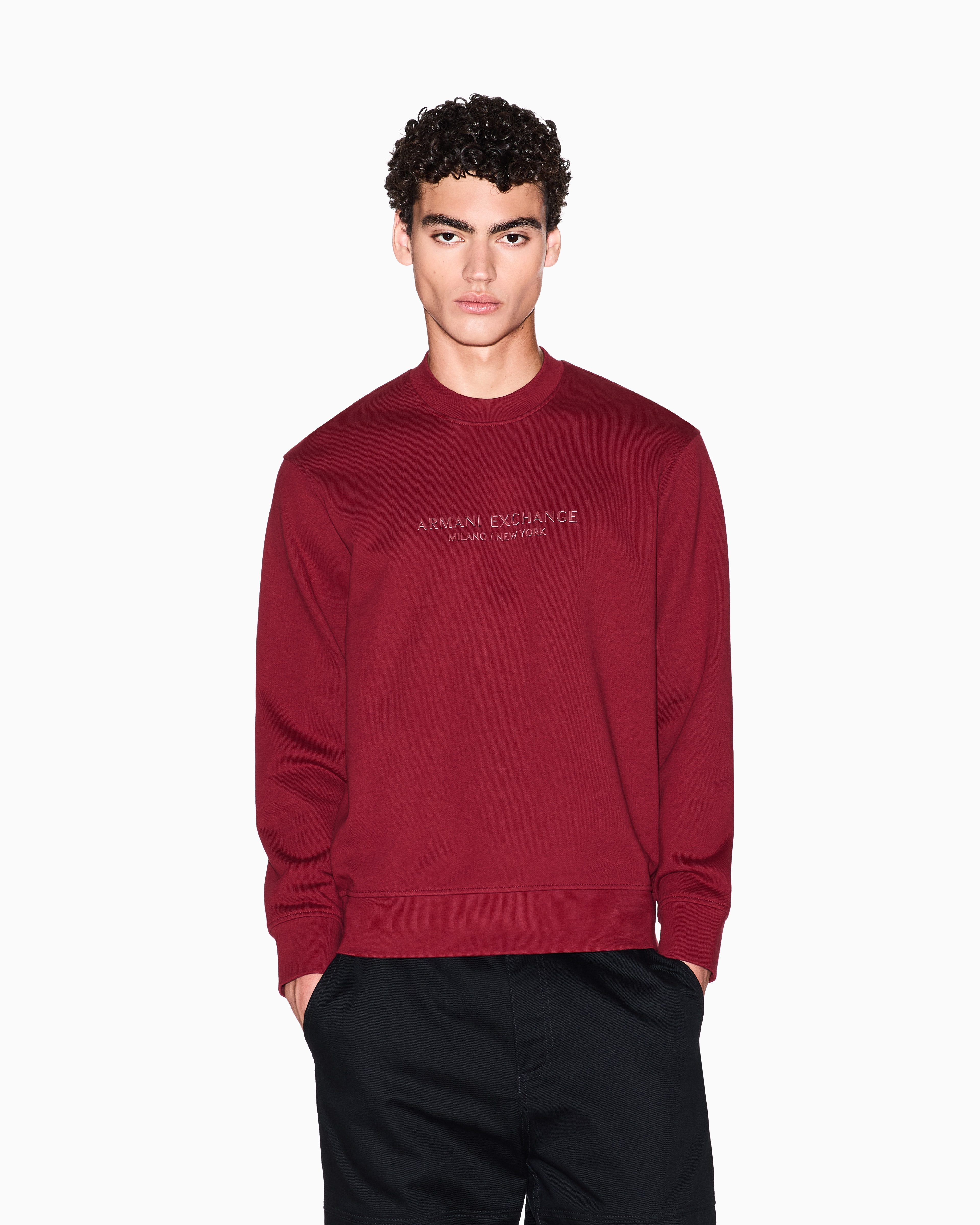 Felpa realizzata in morbido cotone, un classico intramontabile che unisce comfort e stile minimalista. Questo capo essenziale si distingue per il sofisticato lettering "Armani Exchange Milano / New York" stampato tono su tono sul petto, un dettaglio discreto ma di grande effetto. Con il suo classico girocollo, le maniche lunghe e i dettagli a costine, offre una vestibilità impeccabile e una sensazione di comfort.