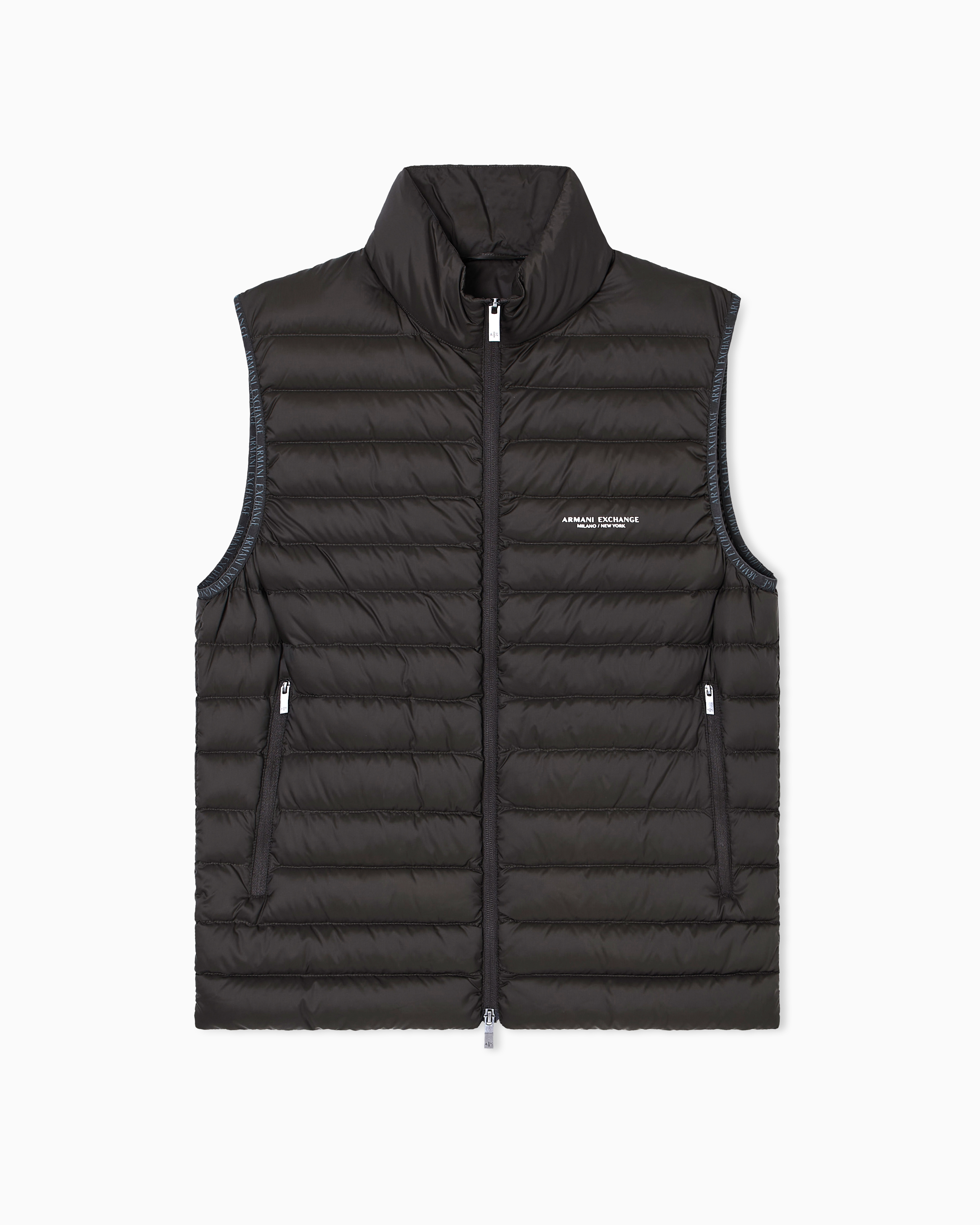 Piumino smanicato realizzato con esterno in nylon resistente e una calda imbottitura in piumino, il capo perfetto per affrontare le mezze stagioni con stile e leggerezza. Questo piumino smanicato si distingue per la sua trapuntatura orizzontale che garantisce una distribuzione uniforme del calore e per il suo design versatile. Il collo alto protegge dal vento, mentre la chiusura frontale con zip e le tasche laterali con zip aggiungono funzionalità. Il logo "Armani Exchange Milano / New York" stampato a contrasto sul petto firma il capo con un tocco iconico.