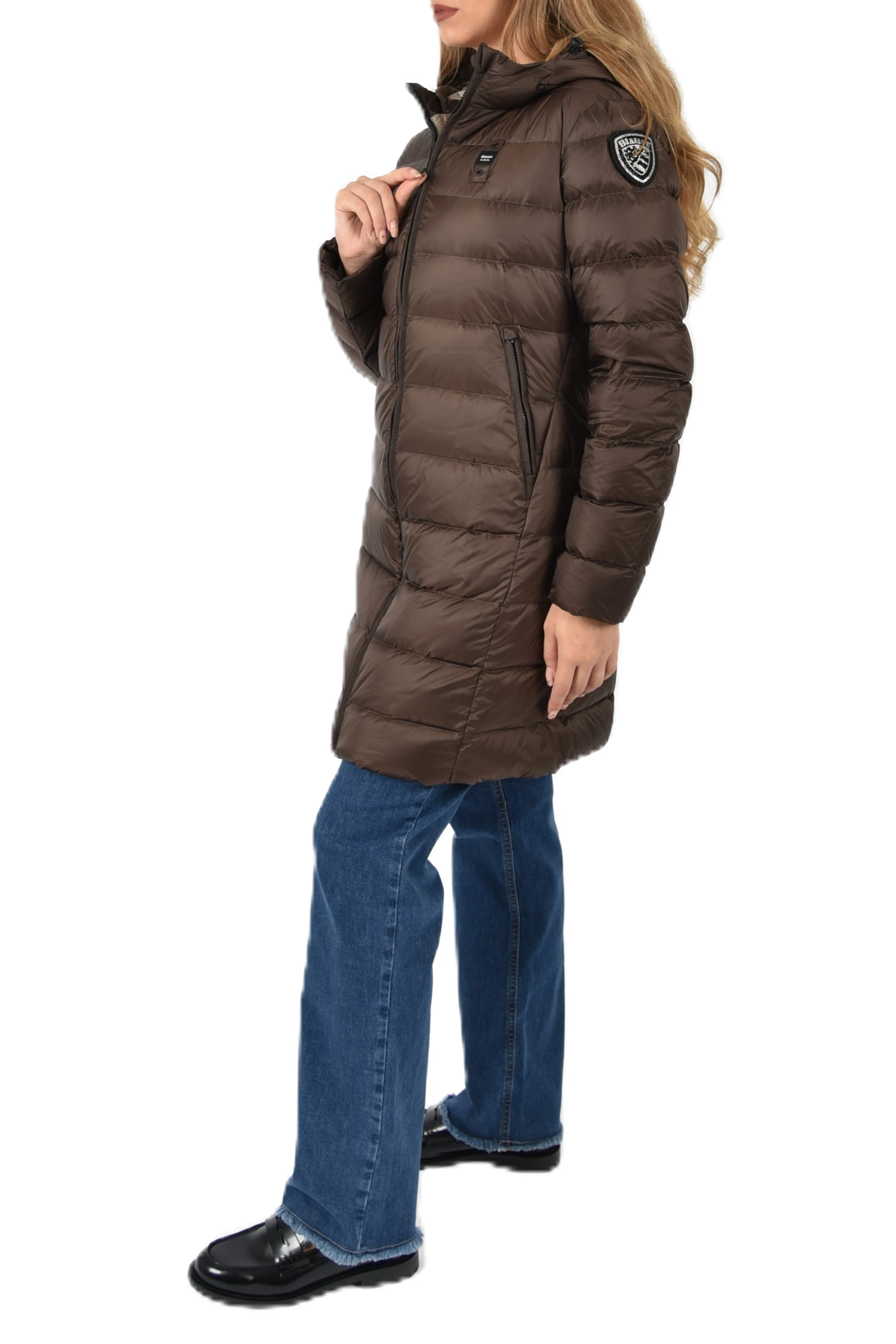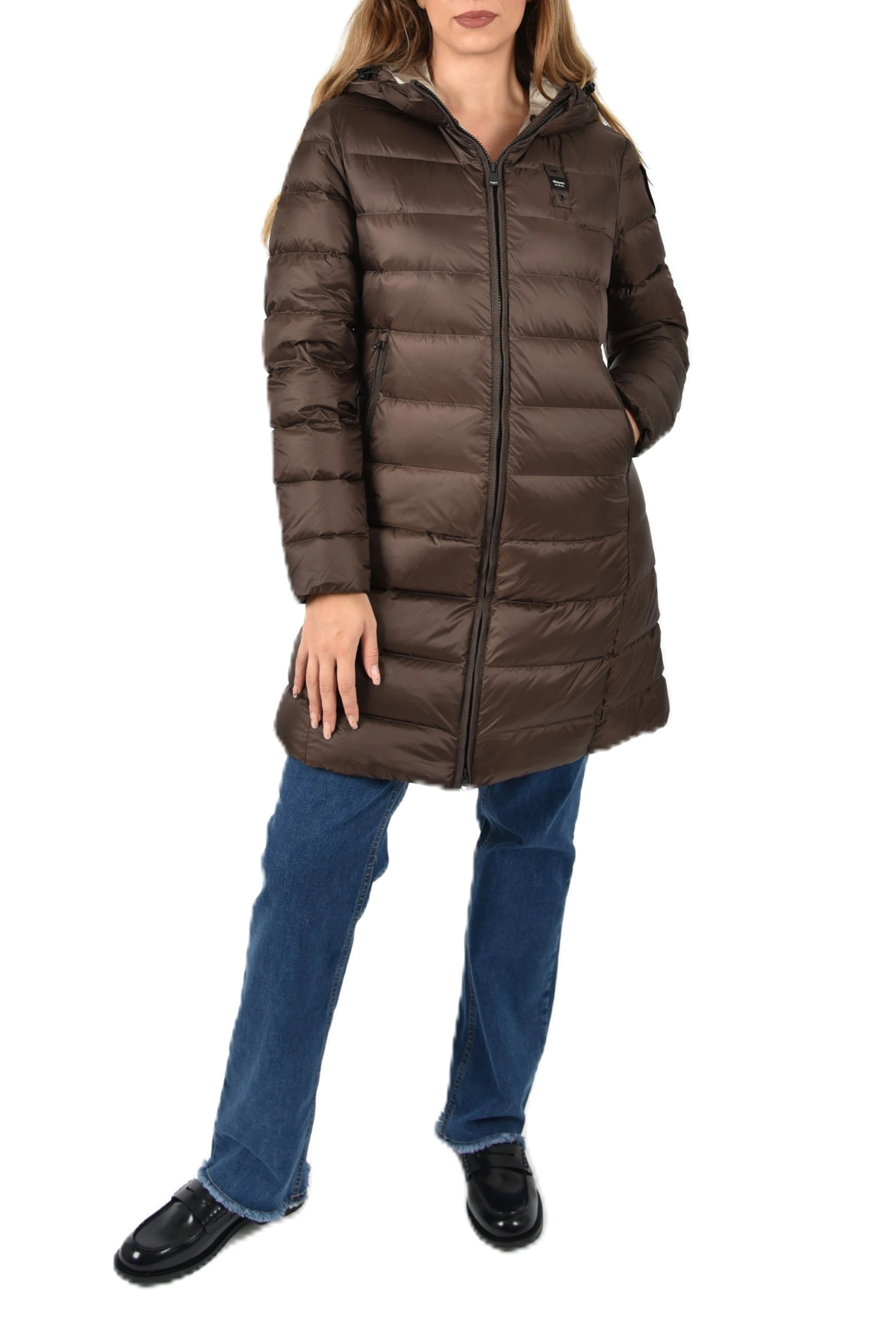 Piumino lungo trapuntato a righe orizzontali ed interno in contrasto colore. Capo con imbottitura naturale morbida, calda e non ingombrante, dai colori fashion e dal taglio che risalta il punto vita.
