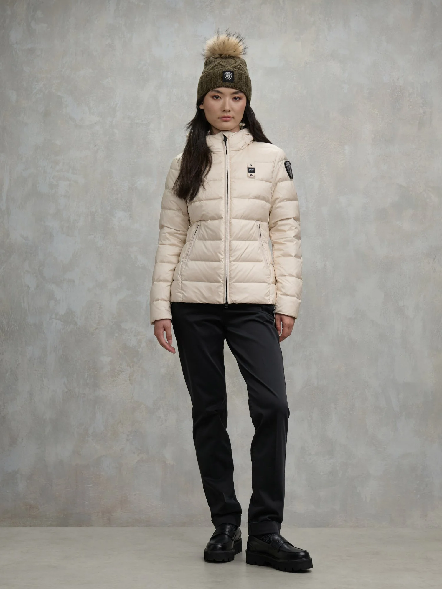 Piumino idrorepellente trapuntato a righe orizzontali. Capo con imbottitura leggera, calda e non ingombrante, dai colori fashion e dal taglio che risalta il punto vita.