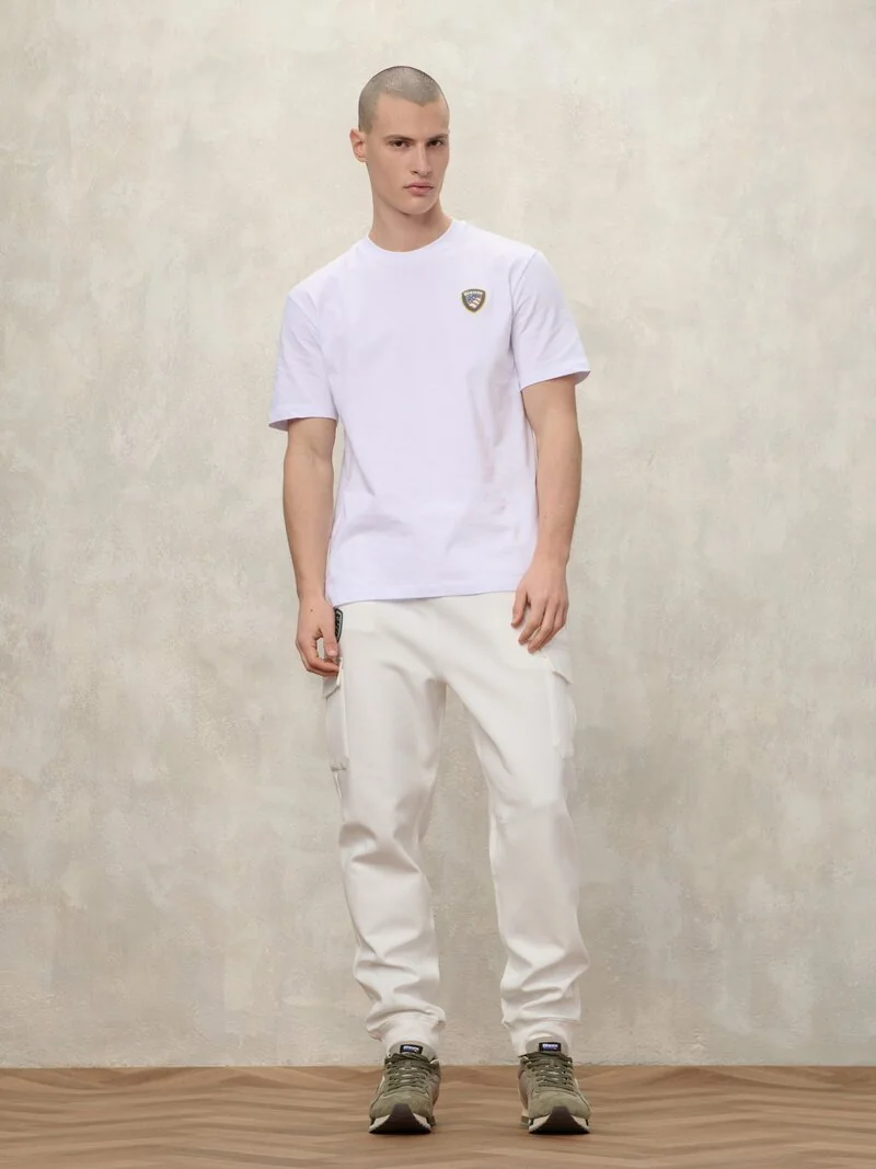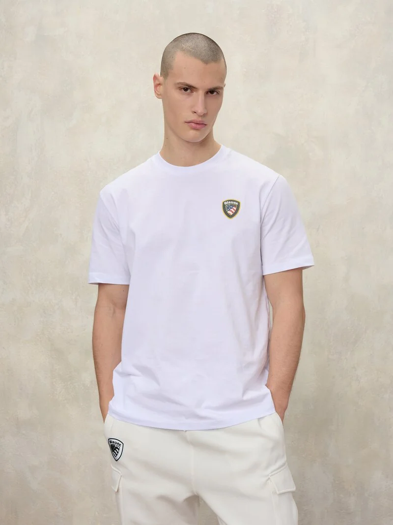 T shirt manica corta con logo gommato e colorato sul petto. Maglietta dal gusto classico e giovanile.