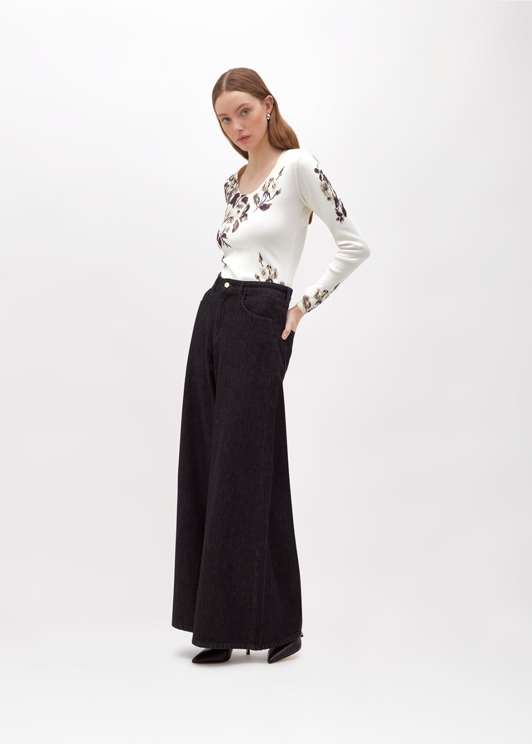 Aggiungi un tocco floreale al guardaroba con la maglia in viscosa stretch caratterizzata da stampa a rose piazzata. ha linea fitted, scollo tondo, maniche lunghe, finiture leggermente a contrasto, spalline imbottite. ideale per dare personalità al look.