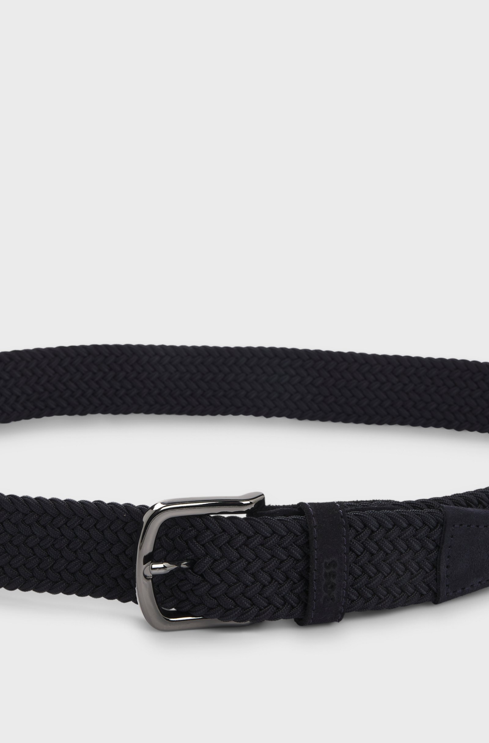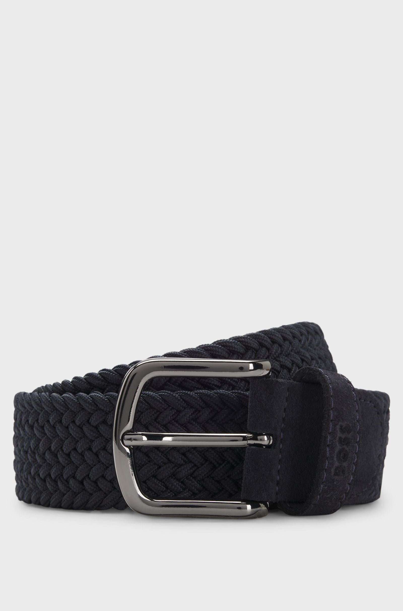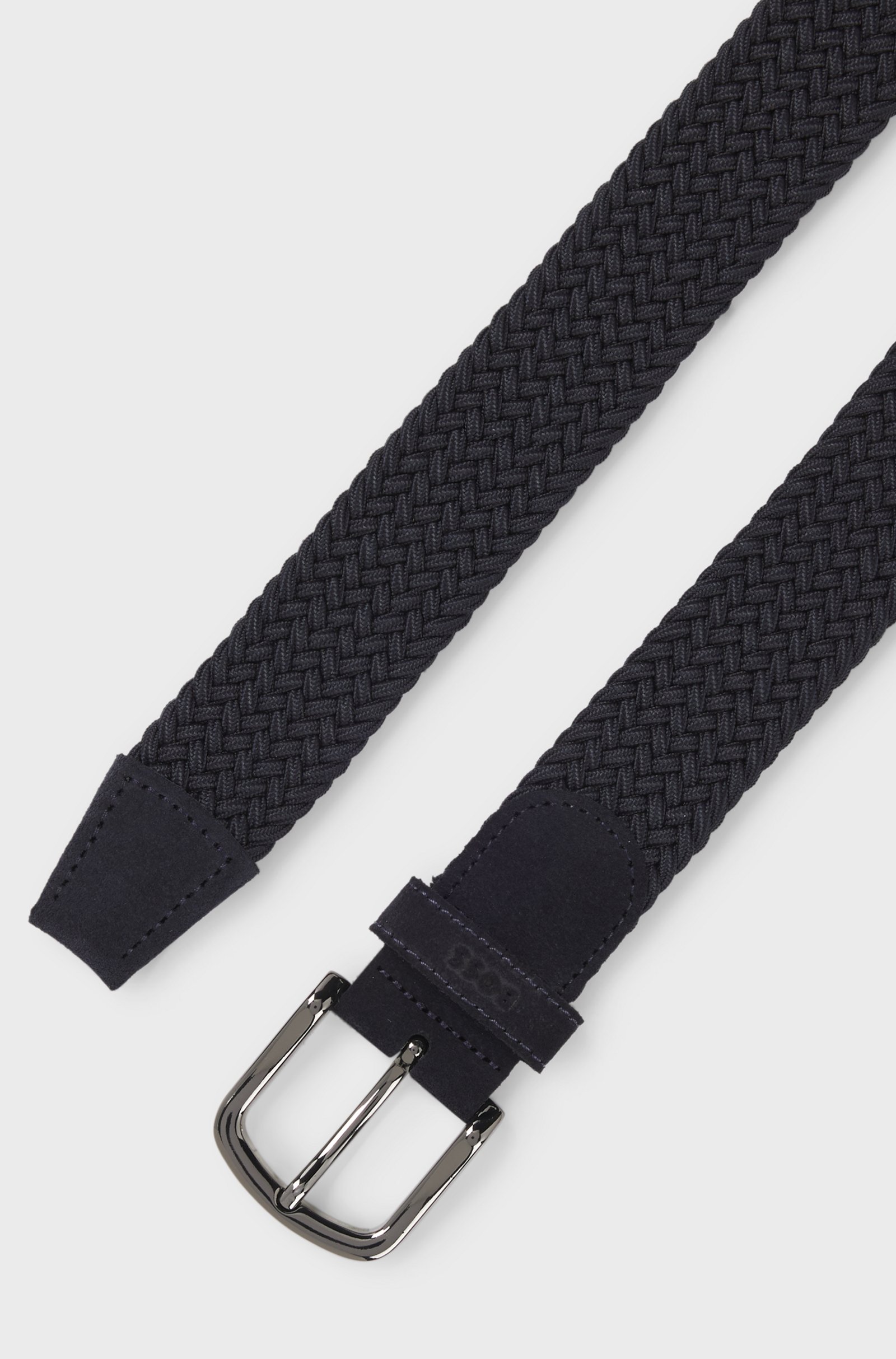 Caratterizzata da texture a contrasto, questa cintura BOSS Uomo intrecciata larga 3,5 cm aggiunge un tocco originale al tuo look. Morbide rifiniture in pelle scamosciata e passante con logo. Per la migliore vestibilità, consigliamo di ordinare una cintura di una taglia più grande rispetto alla tua taglia di vita.