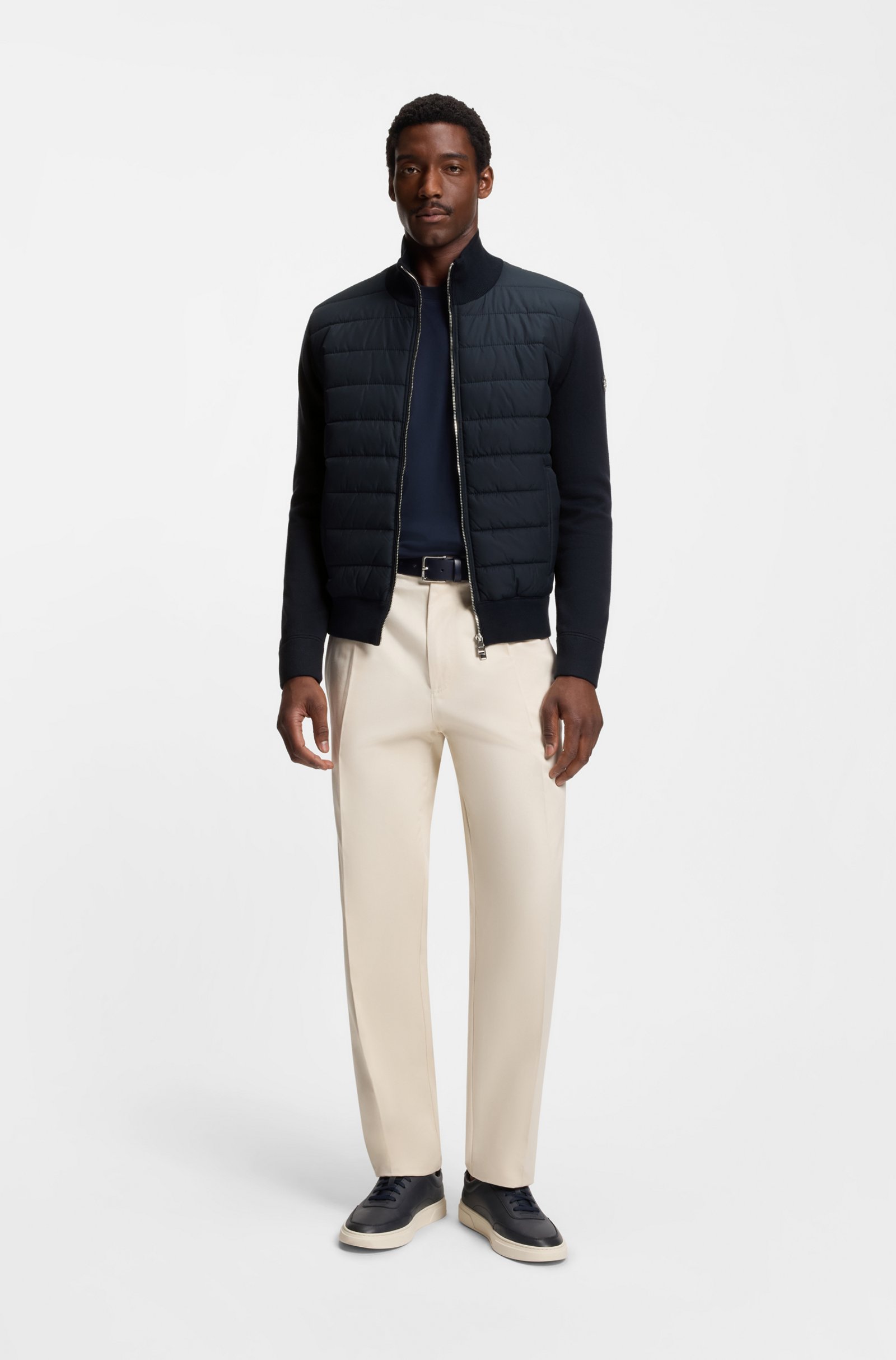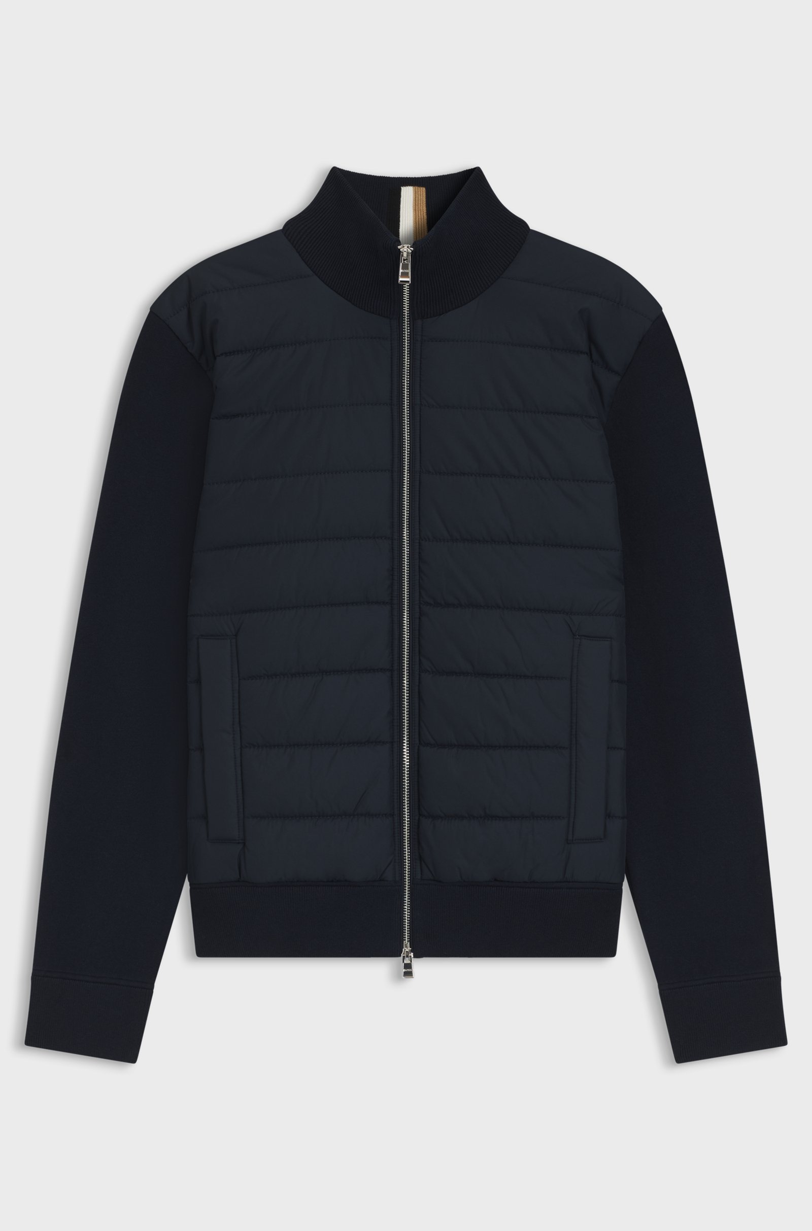 Una calda giacca BOSS Uomo, ideale per i look a strati. In morbido misto lana e cotone con parte anteriore imbottita a contrasto. Dettagli in maglia a coste. Questo prodotto contiene almeno il 60% di materie prime di qualità superiore. Questo prodotto è parzialmente realizzato in cotone biologico. I nostri standard in materia di coltivazione biologica non consentono l'uso di fertilizzanti sintetici, pesticidi o semi geneticamente modificati.