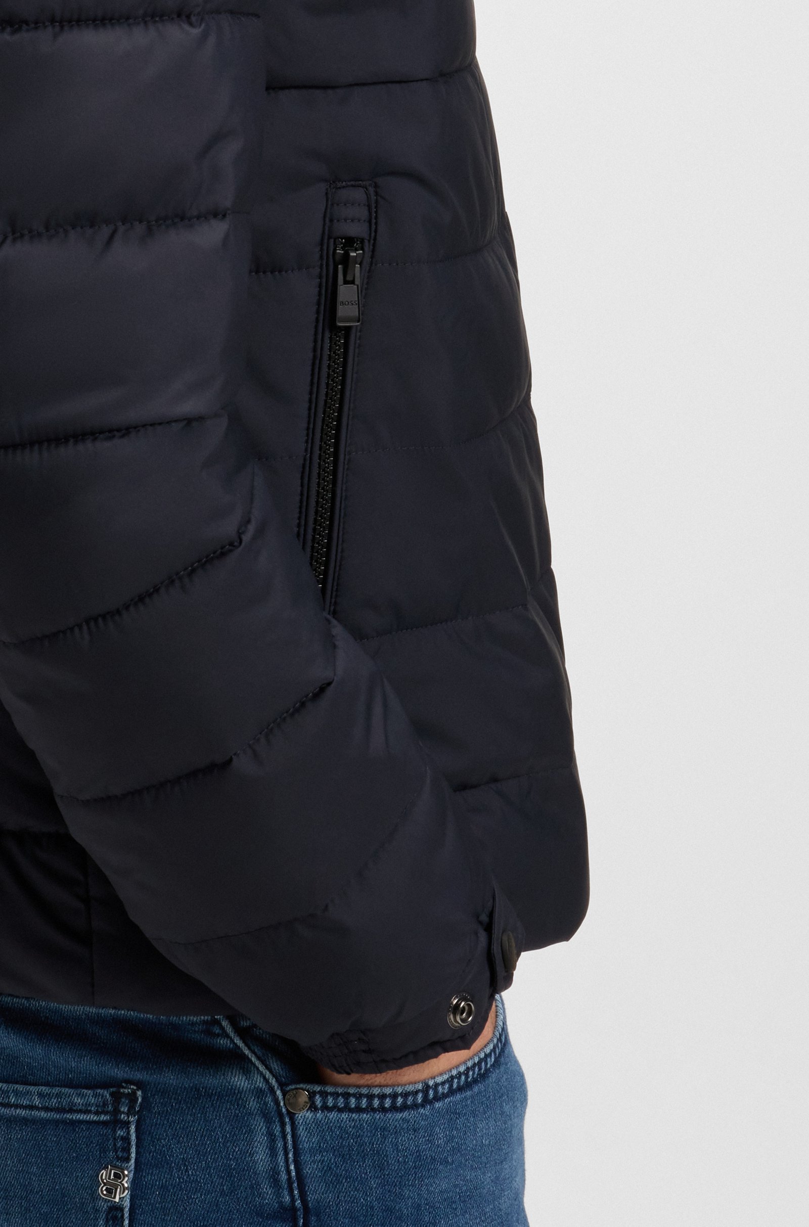 Un giubbotto regular fit BOSS Uomo con imbottitura leggera. Questo capo idrorepellente è rifinito con un logo BOSS sul petto. Questo prodotto contiene almeno il 60% di materie prime di qualità superiore. Questo prodotto è parzialmente realizzato con poliestere riciclato. HUGO BOSS preferisce utilizzare poliestere riciclato proveniente da scarti tessili pre e post-consumo e si impegna attivamente per sostituire il poliestere derivato dalle bottiglie in PET.