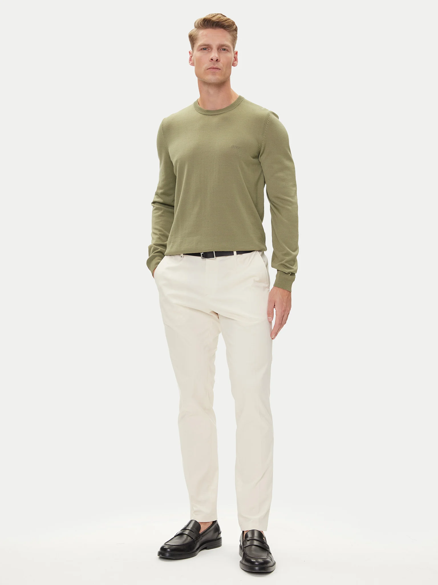 Realizzato in lana vergine termoregolante, questo maglione BOSS Uomo è un must per ogni guardaroba maschile. Logo ricamato. Vestibilità regular fit a girocollo. Regular fit