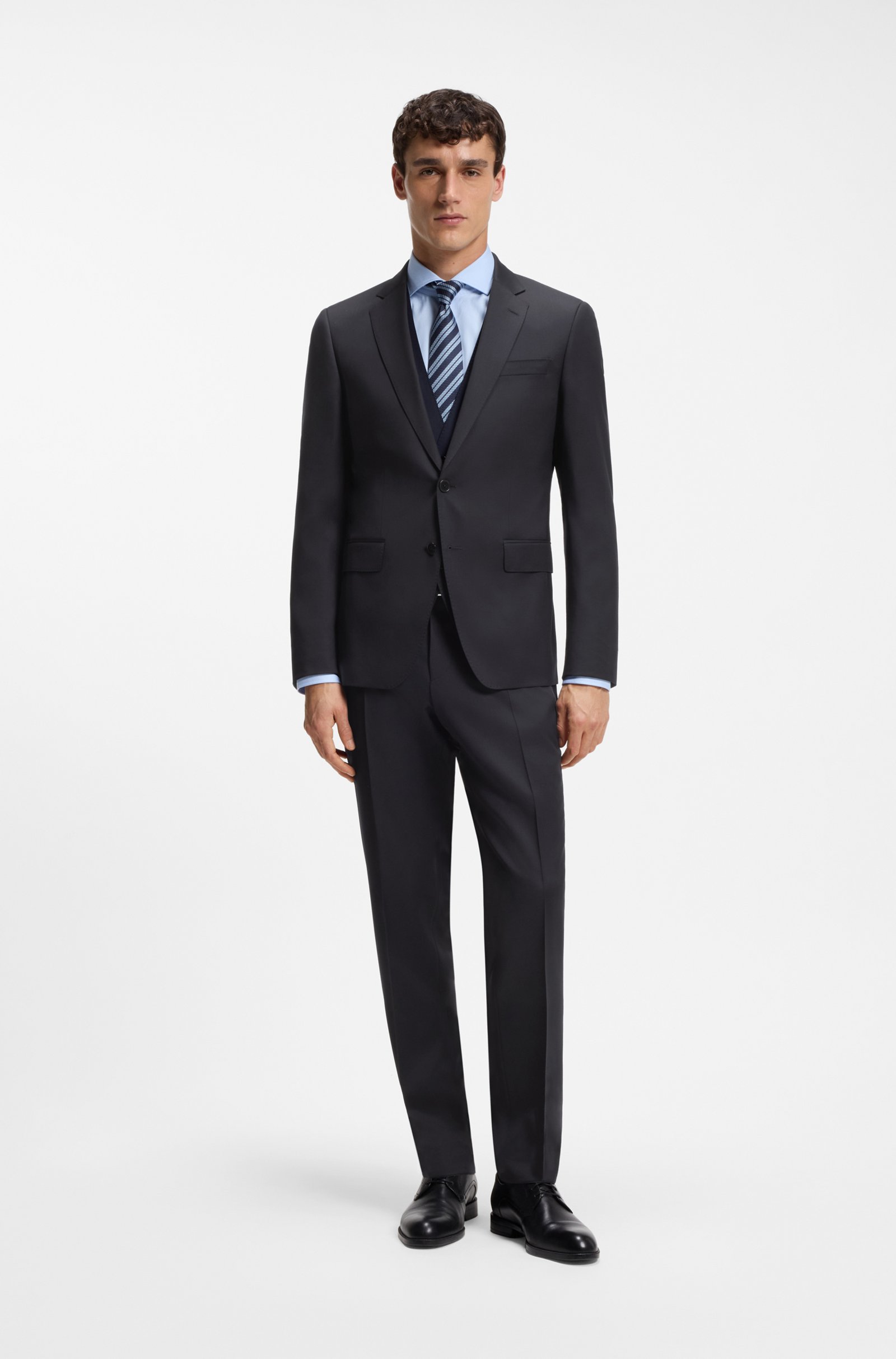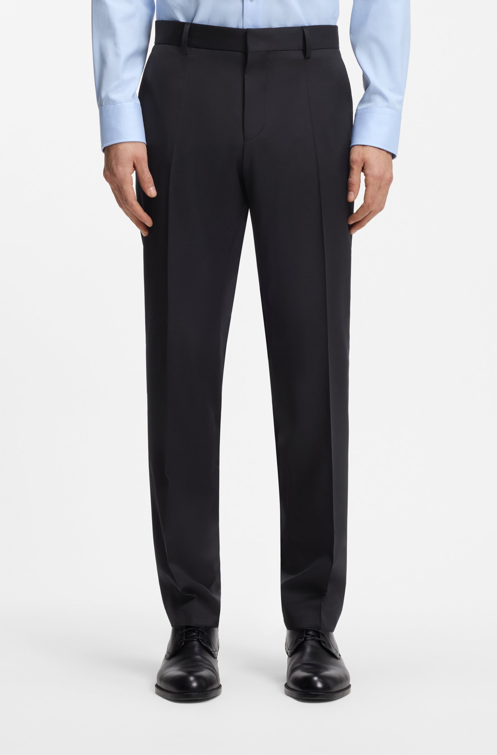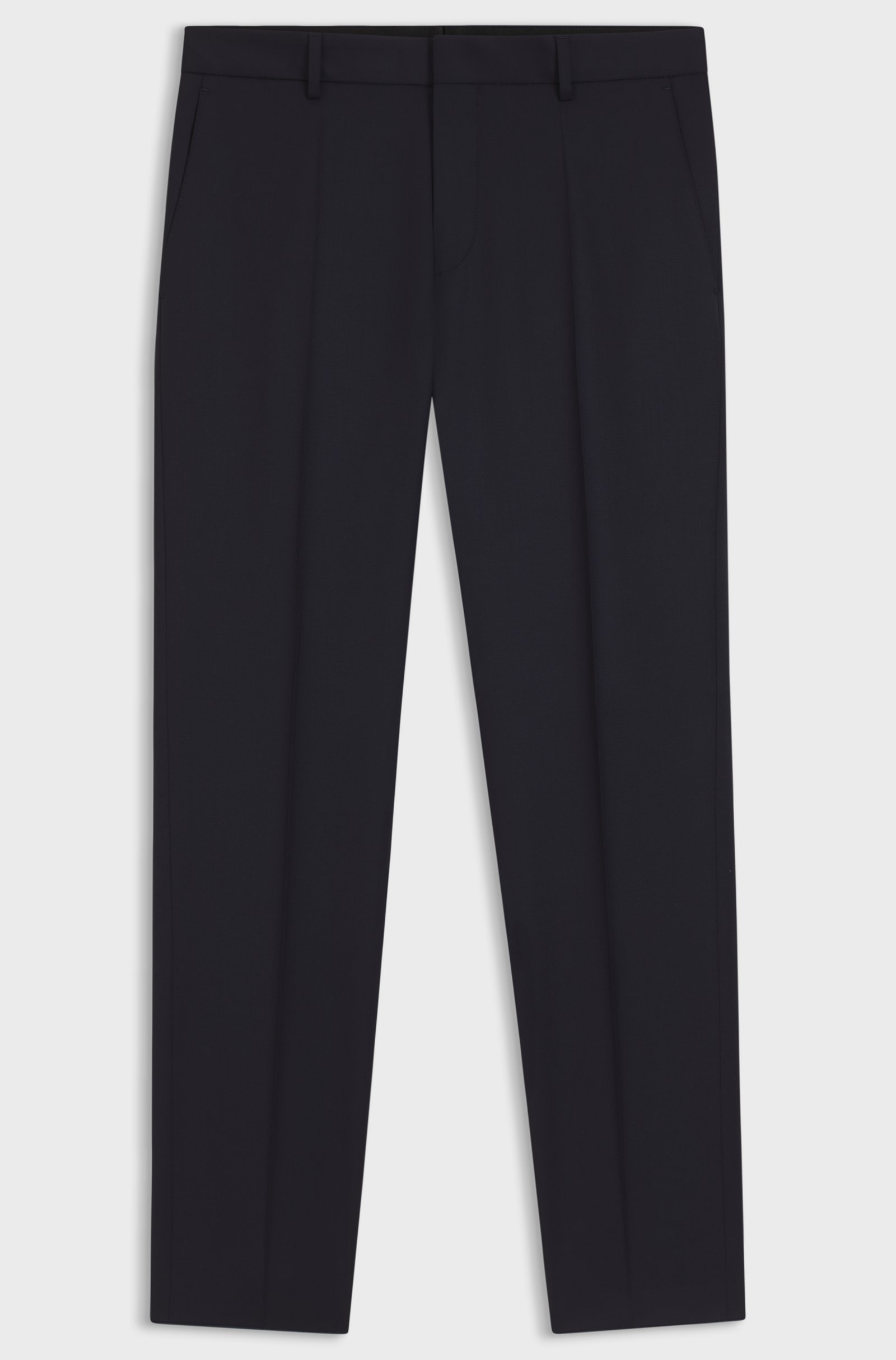 Crea una figura impeccabile con questi pantaloni formali BOSS Uomo. Realizzati in lana finissima con trama serge ed elasticità naturale per il massimo comfort. Slim fit.