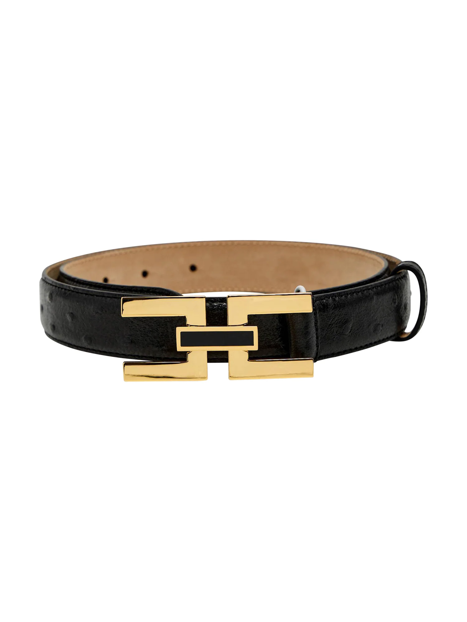 Cintura nera da donna dal design elegante e deciso, caratterizzata da una fibbia in metallo dorato lucido con motivo geometrico, che dona un tocco sofisticato e moderno. La linea pulita e lo spessore medio la rendono un accessorio versatile, perfetto per valorizzare sia outfit casual che look più eleganti. Dotata di chiusura regolabile, si adatta facilmente alla silhouette ed è ideale da indossare su pantaloni, gonne o abiti, aggiungendo un dettaglio di stile raffinato