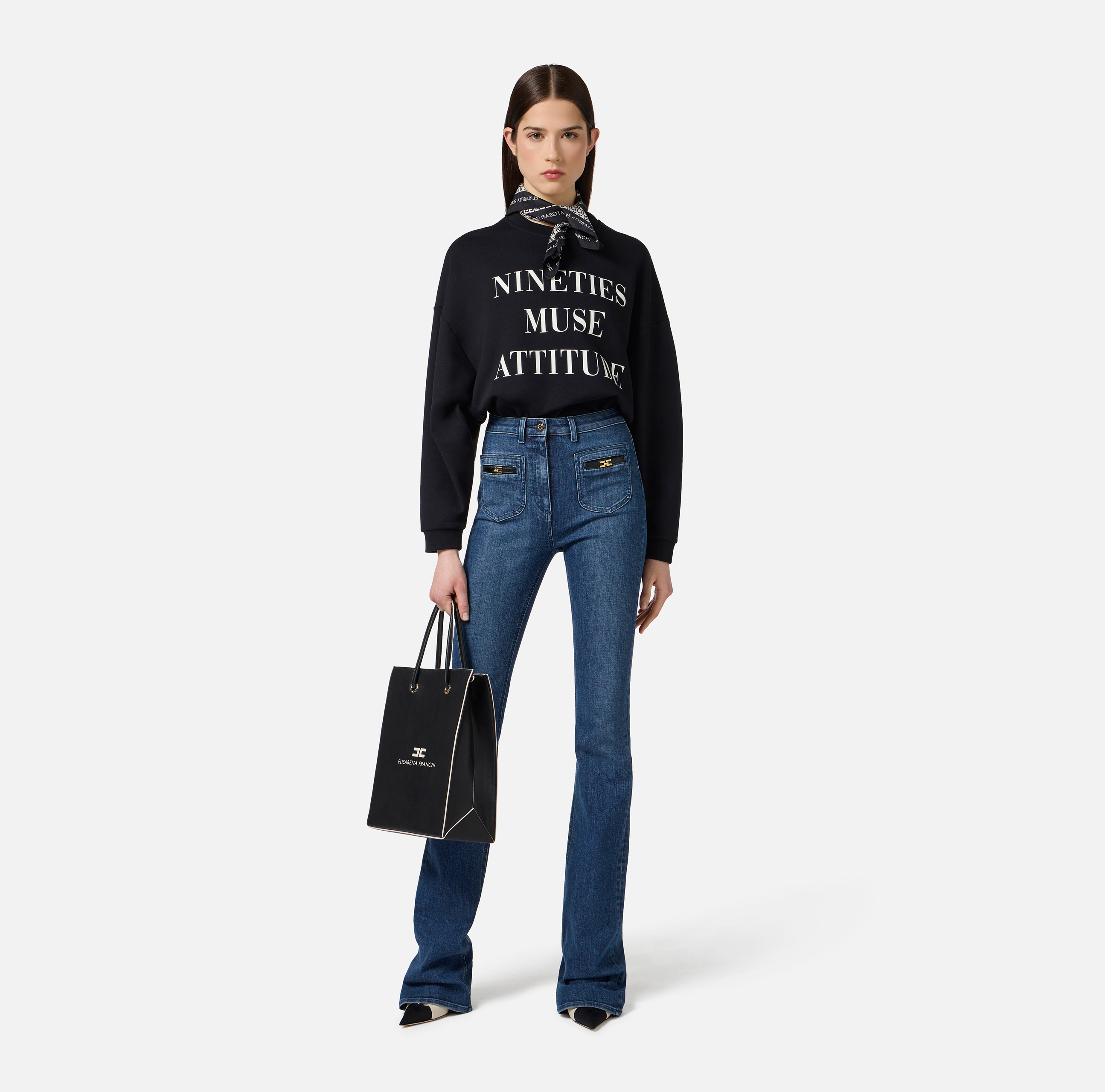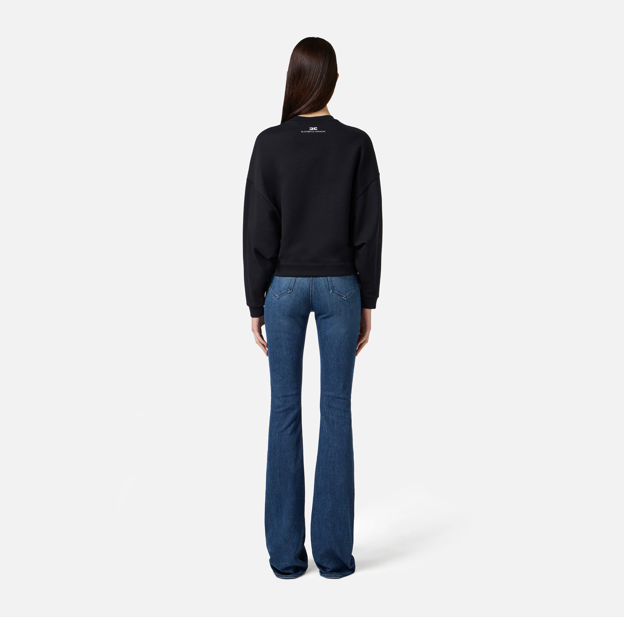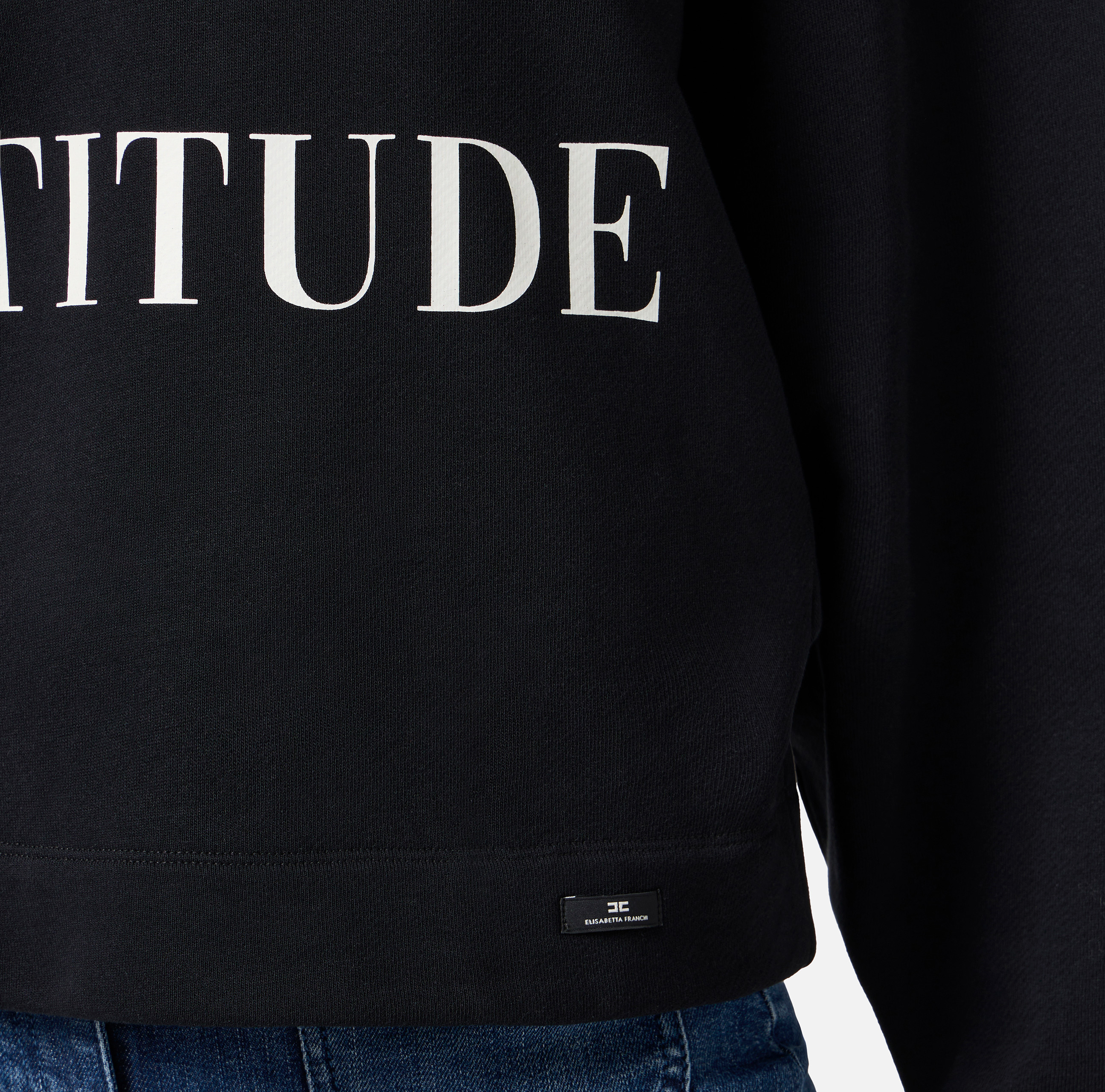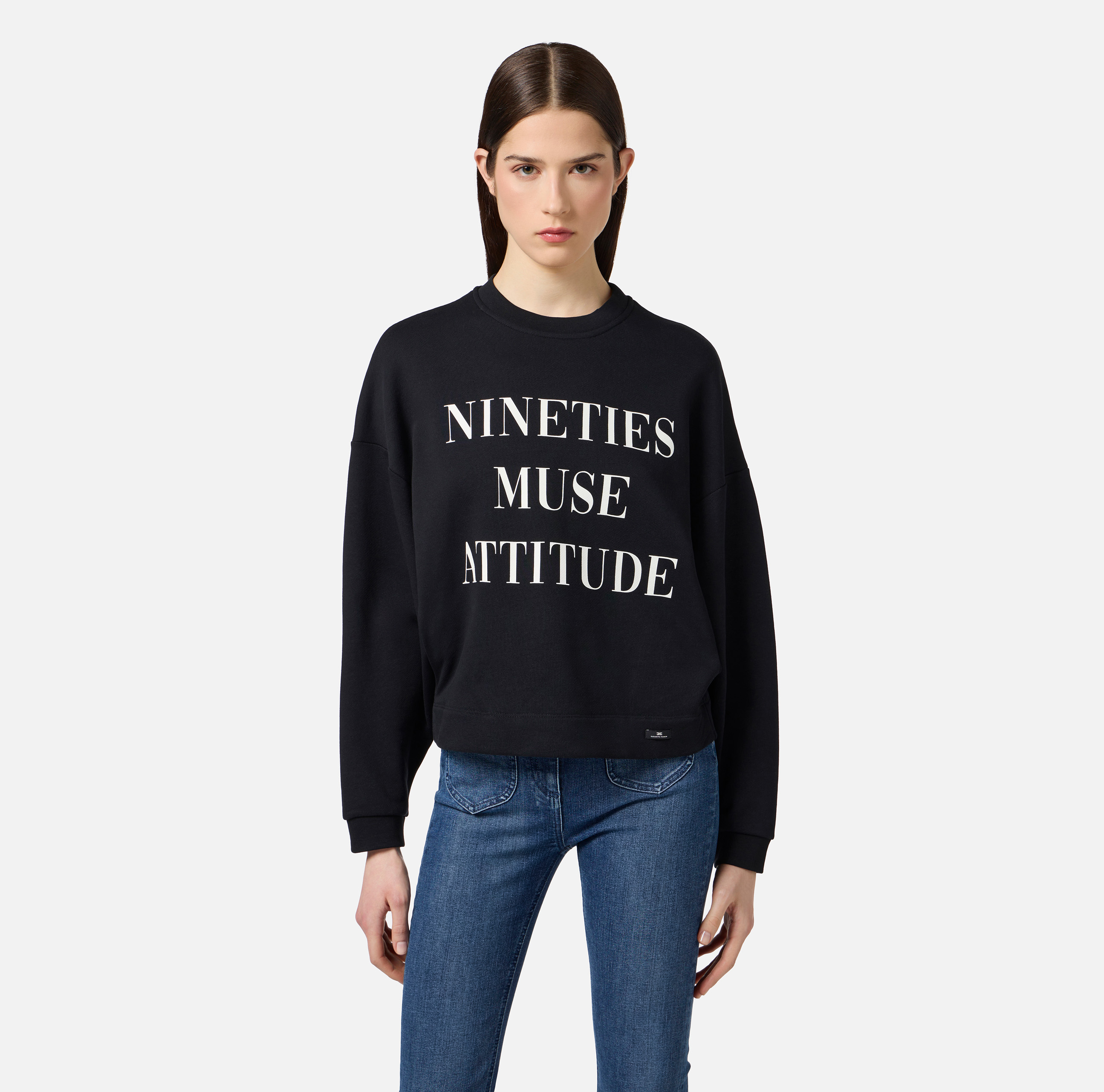 Felpa in cotone dalla vestibilità over. Con girocollo e maniche a pipistrello, è personalizzata dal lettering di collezione sul davanti e dal logo sul retro, stampati in colore a contrasto per un deciso equilibrio grafico. I bordi sono rifiniti a coste.