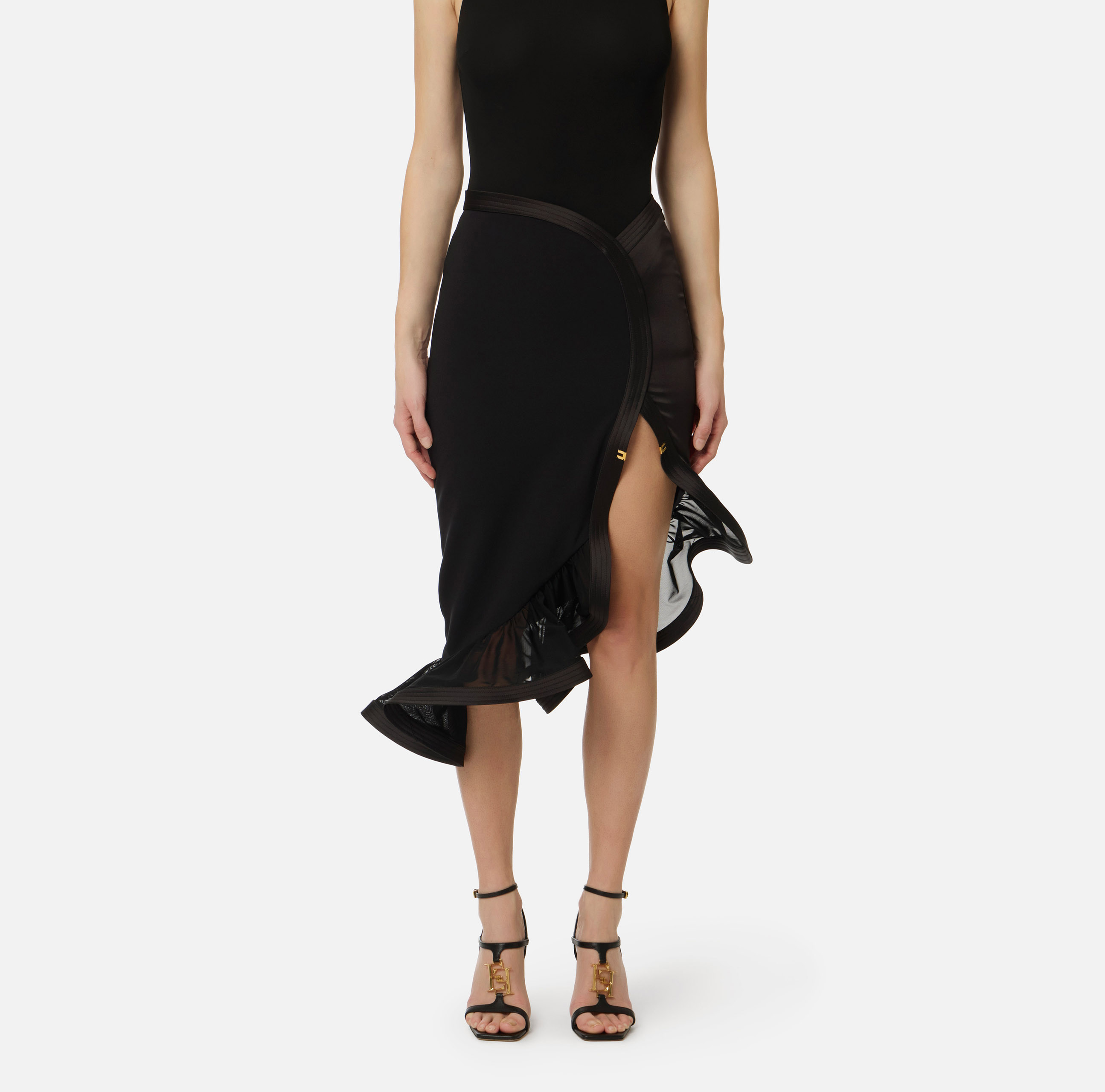 Gonna in crêpe e raso con balza