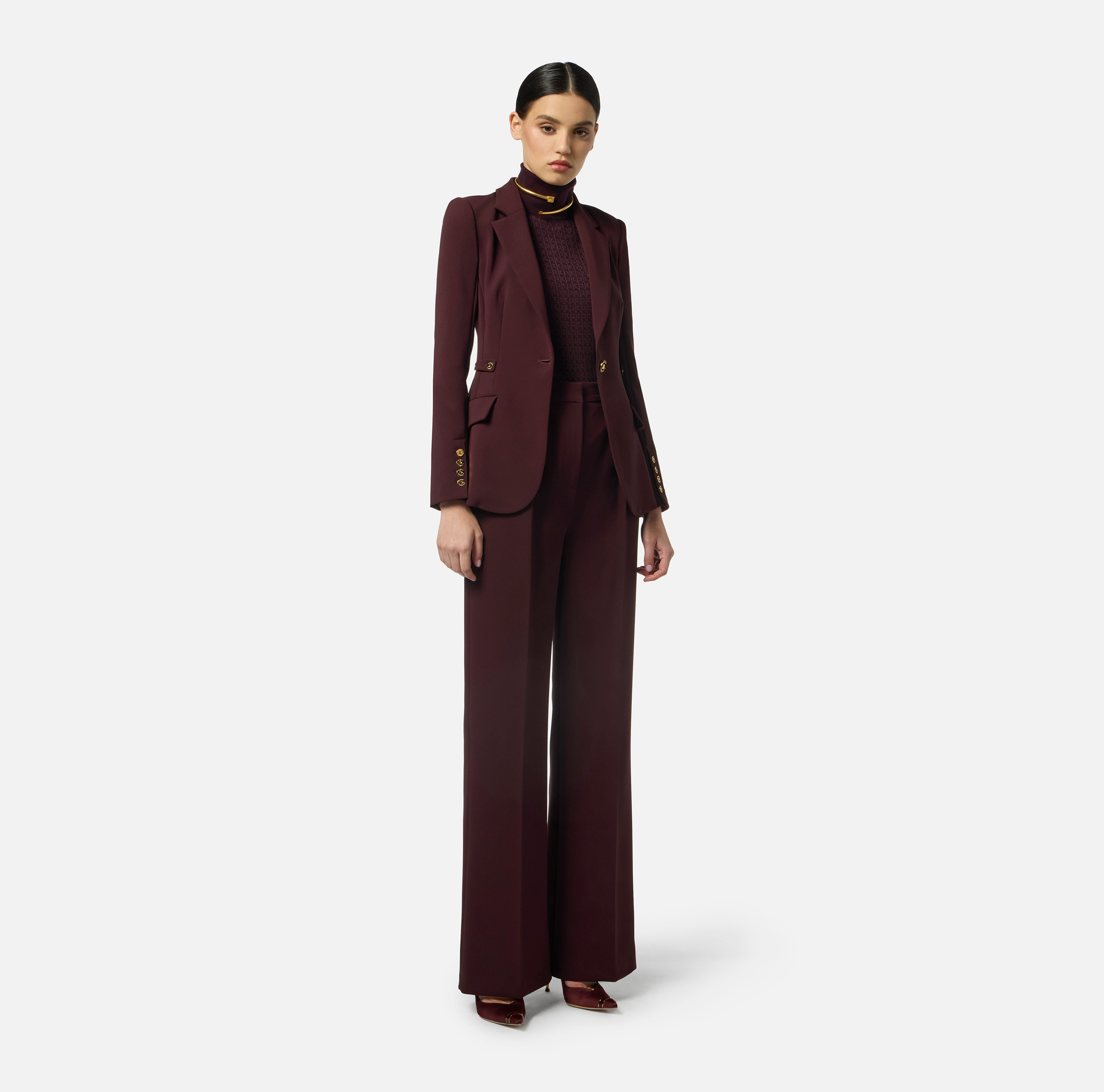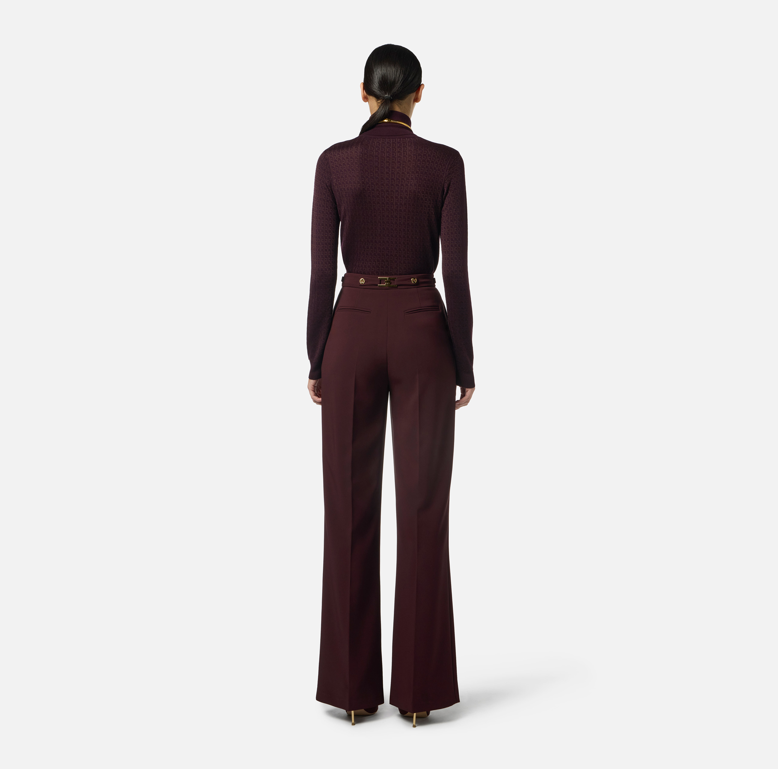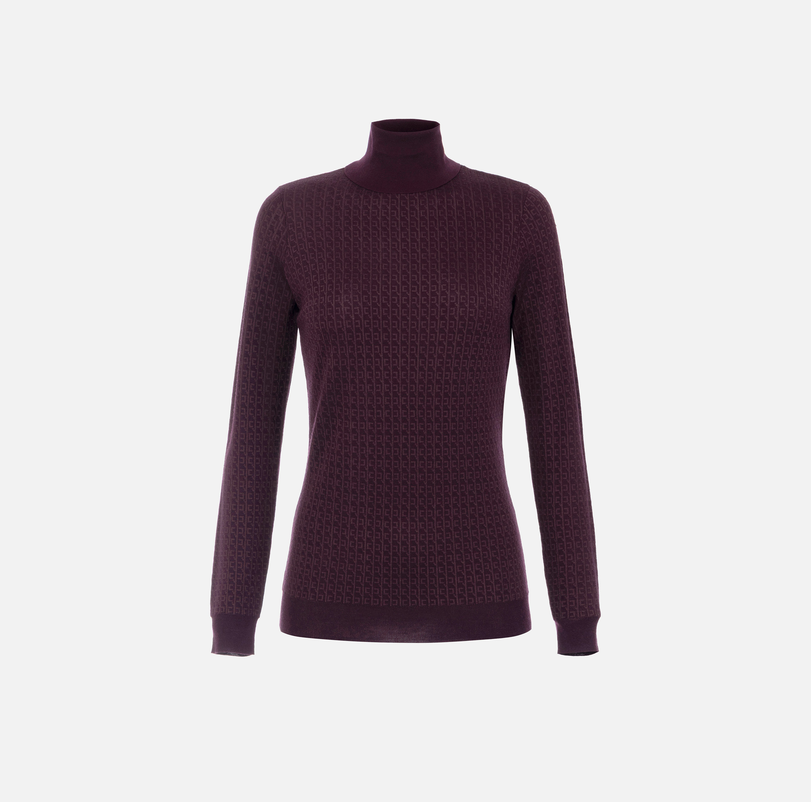 Maglia in lana dalla vestibilità aderente. Ha collo dolcevita con logo intarsiato e si distingue per la trama jacquard con pattern di collezione declinato in micro-logo, in tono per creare studiati effetti di chiaroscuro. I bordi sono rifiniti a costine.