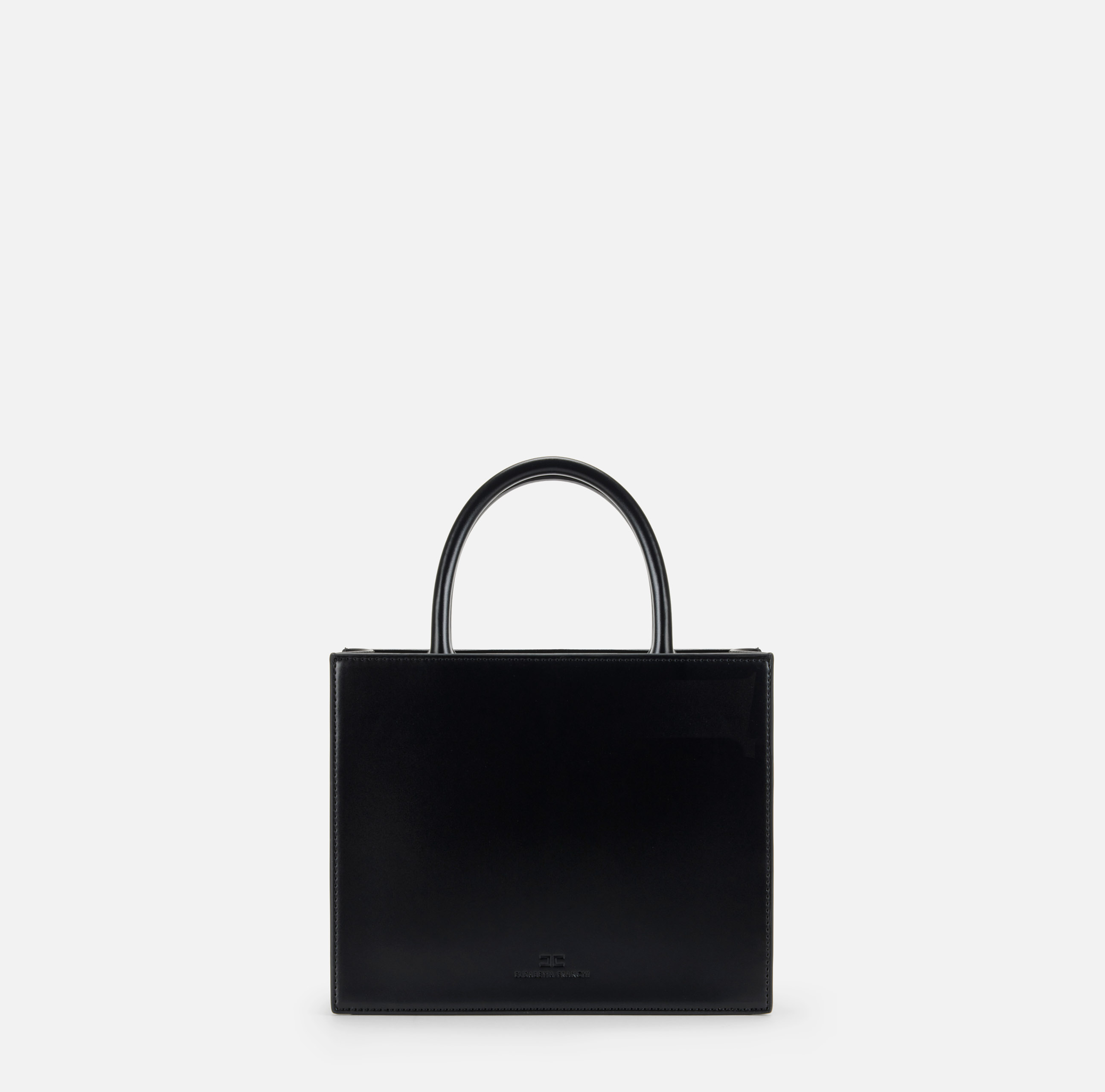 Borsa tote piccola realizzata in materiale sintetico effetto pelle con doppio manico tubolare. Dalla shape compatta ed essenziale, ha logo impreziosito da profili luminosi che aggiungono una nota sofisticata.