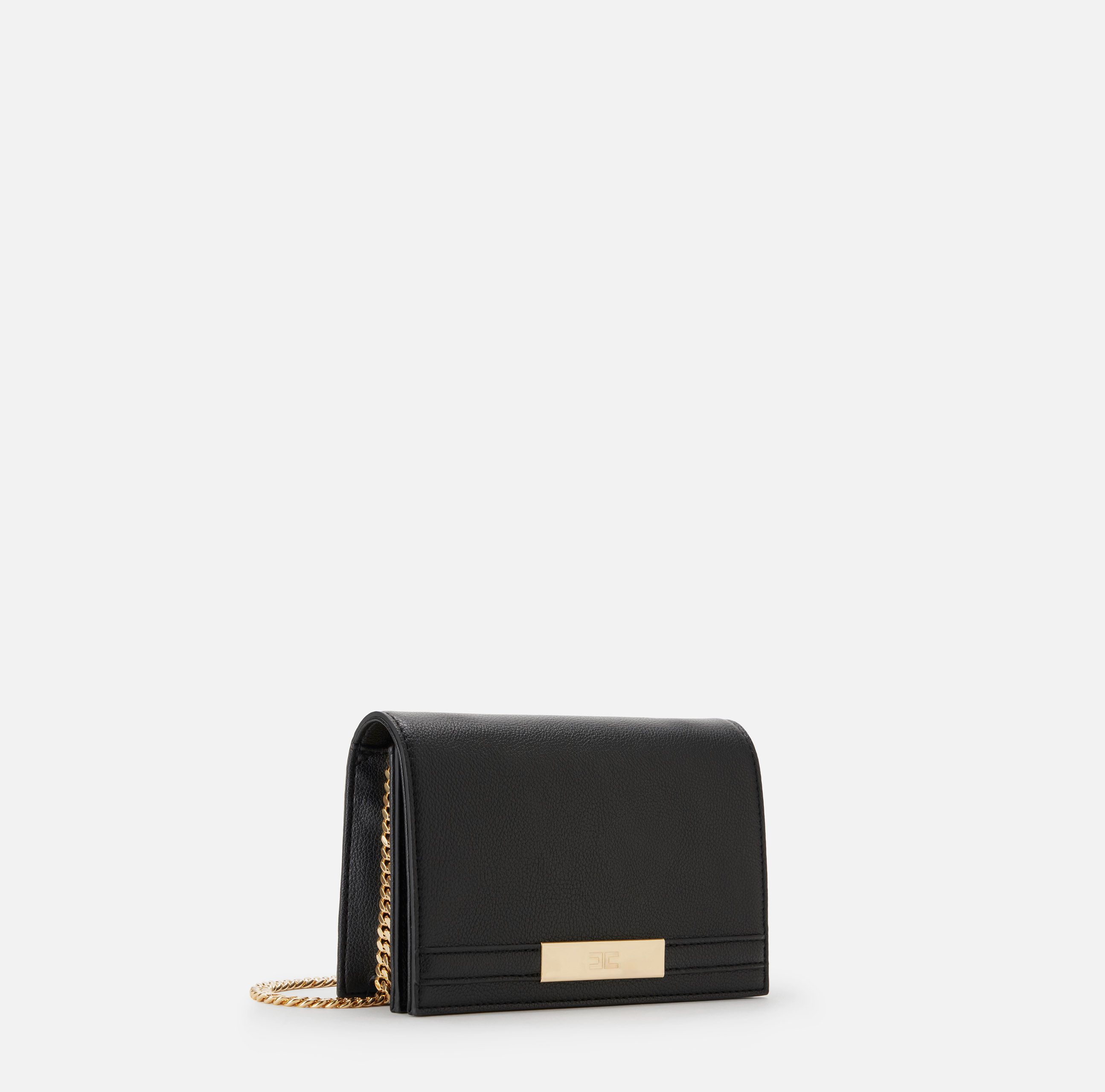 Borsa a tracolla realizzata in materiale sintetico effetto pelle. Dalla shape compatta ed essenziale, ha tracolla con catena groumette in metallo dorato completata con spallaccio. Impreziosita dalla placca con logo che aggiunge un'ultima nota di luce.