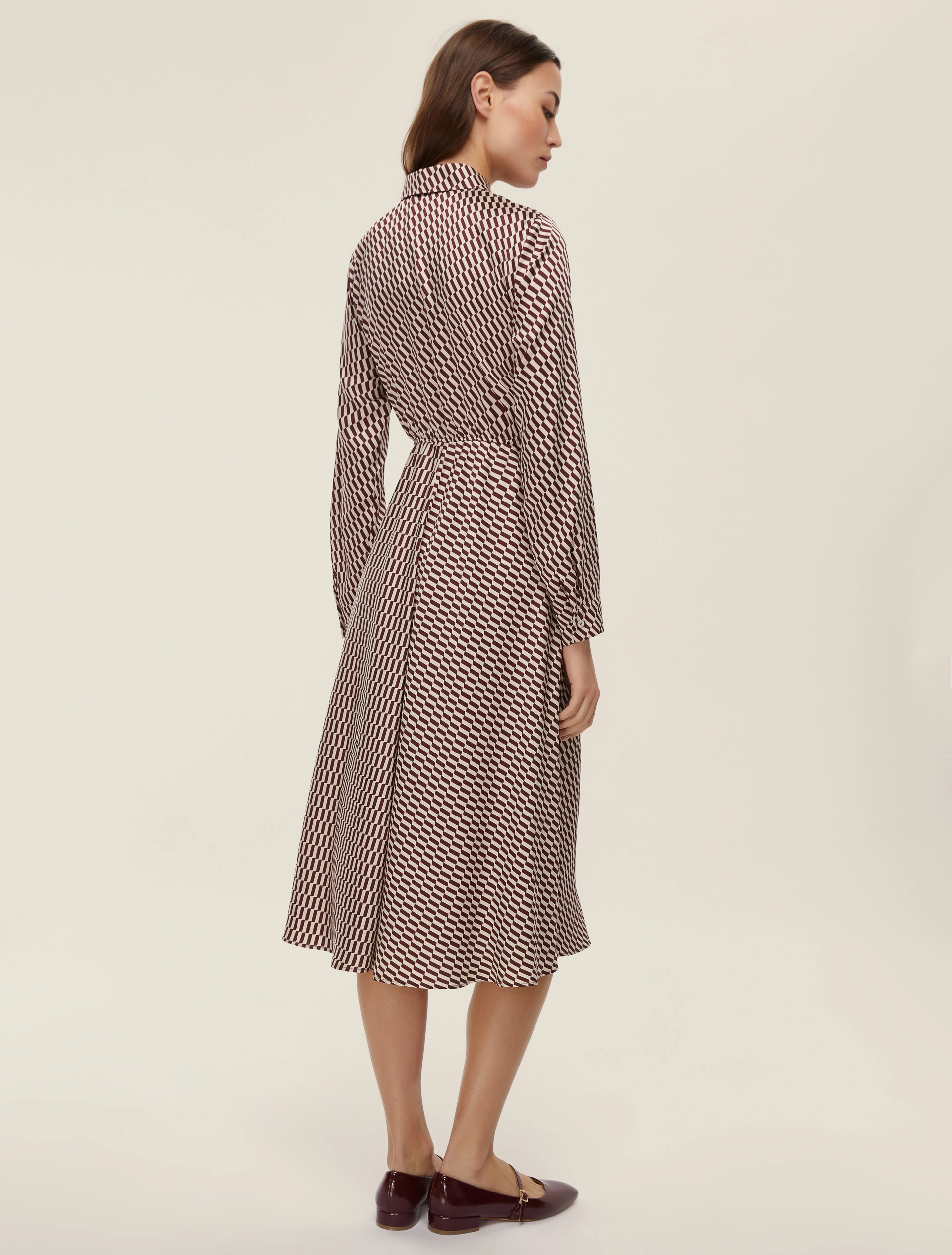Il più versatile, il più amato: lo chemisier in twill mette in risalto la silhouette grazie ai nastri fissi da annodare sul davanti. Da completare con slingback o ballerine, a seconda del mood.