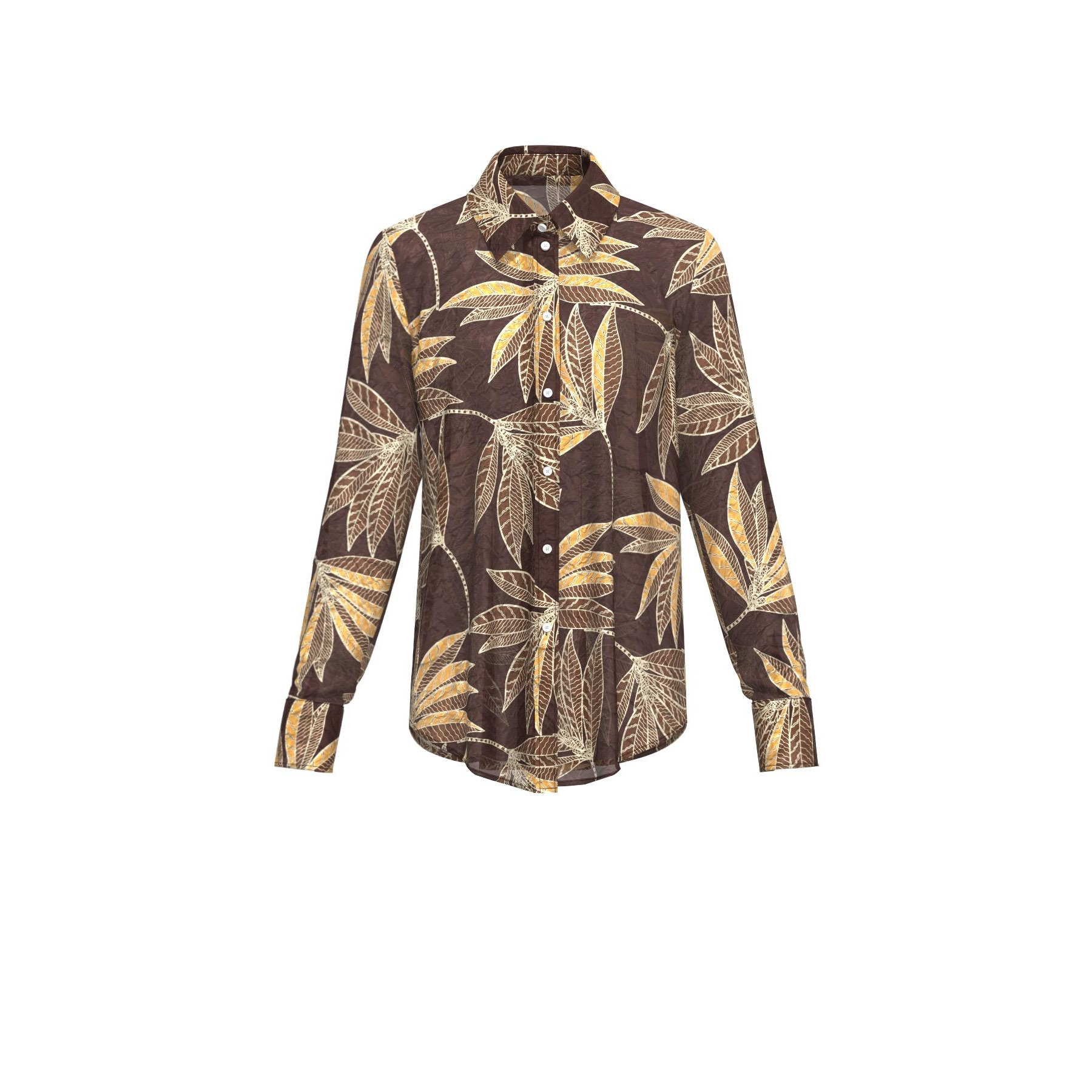 Lasciati ispirare dai colori e dalla fantasia audace di questa camicia in raso: facile da abbinare con blazer e longuette, o da indossare con i denim wide leg di collezione.
