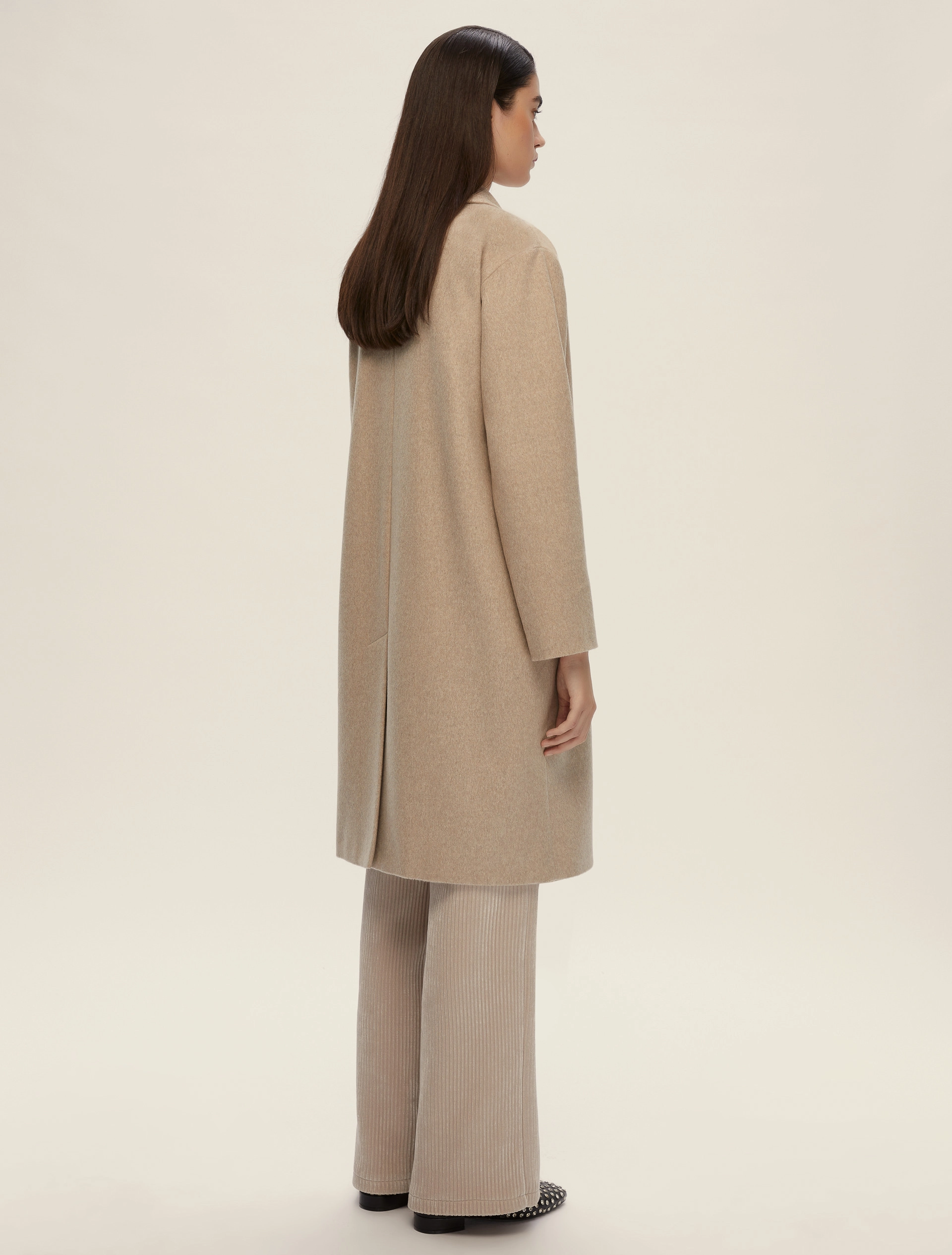 Morbido, avvolgente, prezioso nel tessuto Manteco, questo cappotto è il compagno fidato della stagione fredda. Con rever e doppiopetto per una nota mascolina e cool alle tue mise.