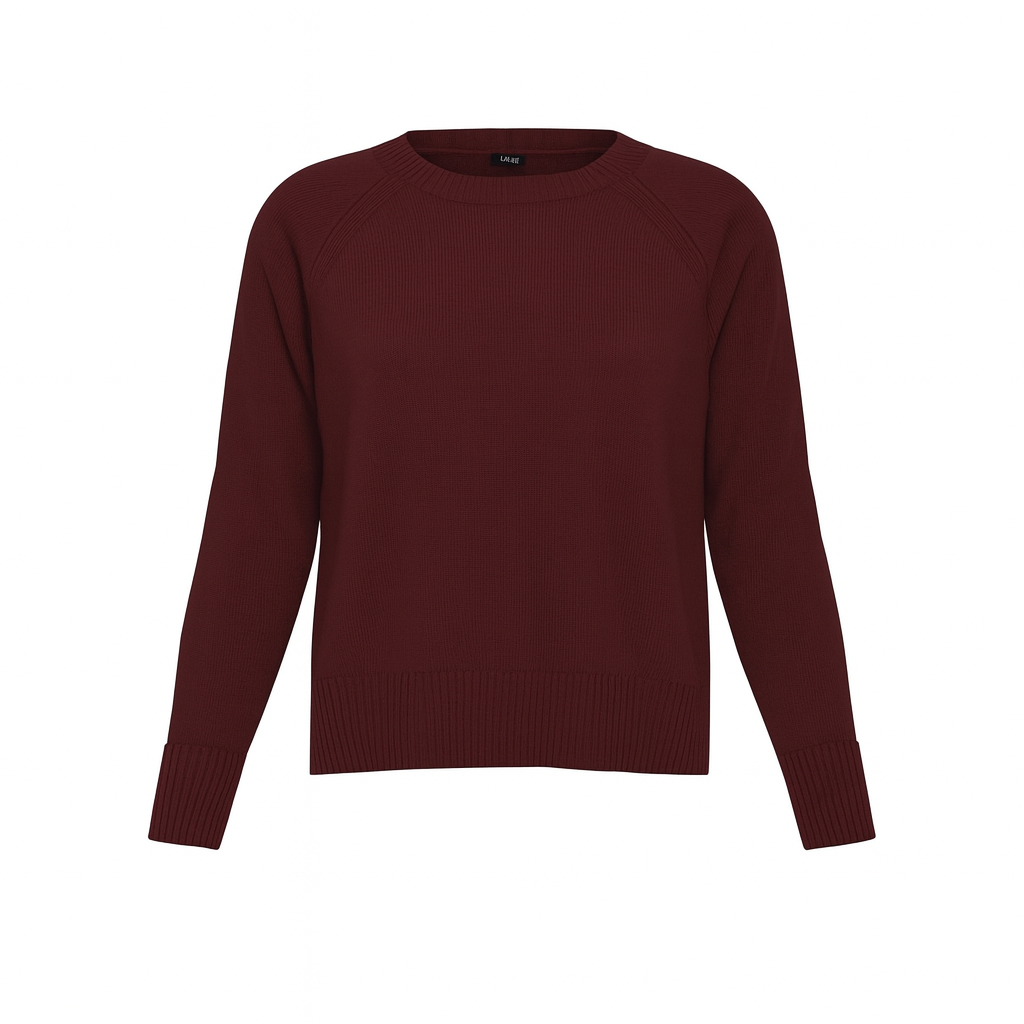 Maglia bordeaux "Ginetta" in filato di misto viscosa stretch dal fit dritto. Modello con scollo a barca, maniche a tre quarti con taglio raglan e fondo asimmetrico rifinito con dettaglio a costine. Versatile e confortevole per look quotidiani.