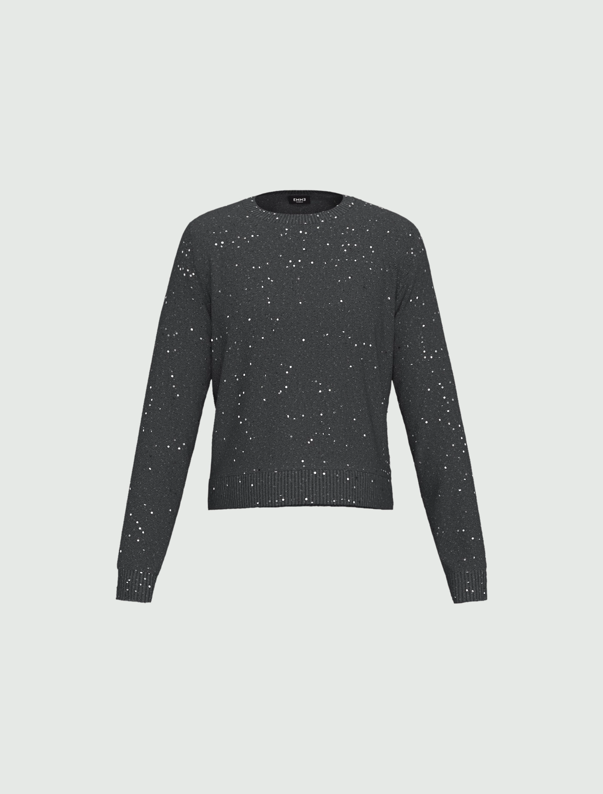 Maglia dalla texture morbida, con un mix calibrato di filato comfy e paillettes impercettibili. Il fit dritto e la lavorazione a rovescio aggiungono un twist contemporaneo, mentre i bordi a costine ne definiscono il carattere essenziale.