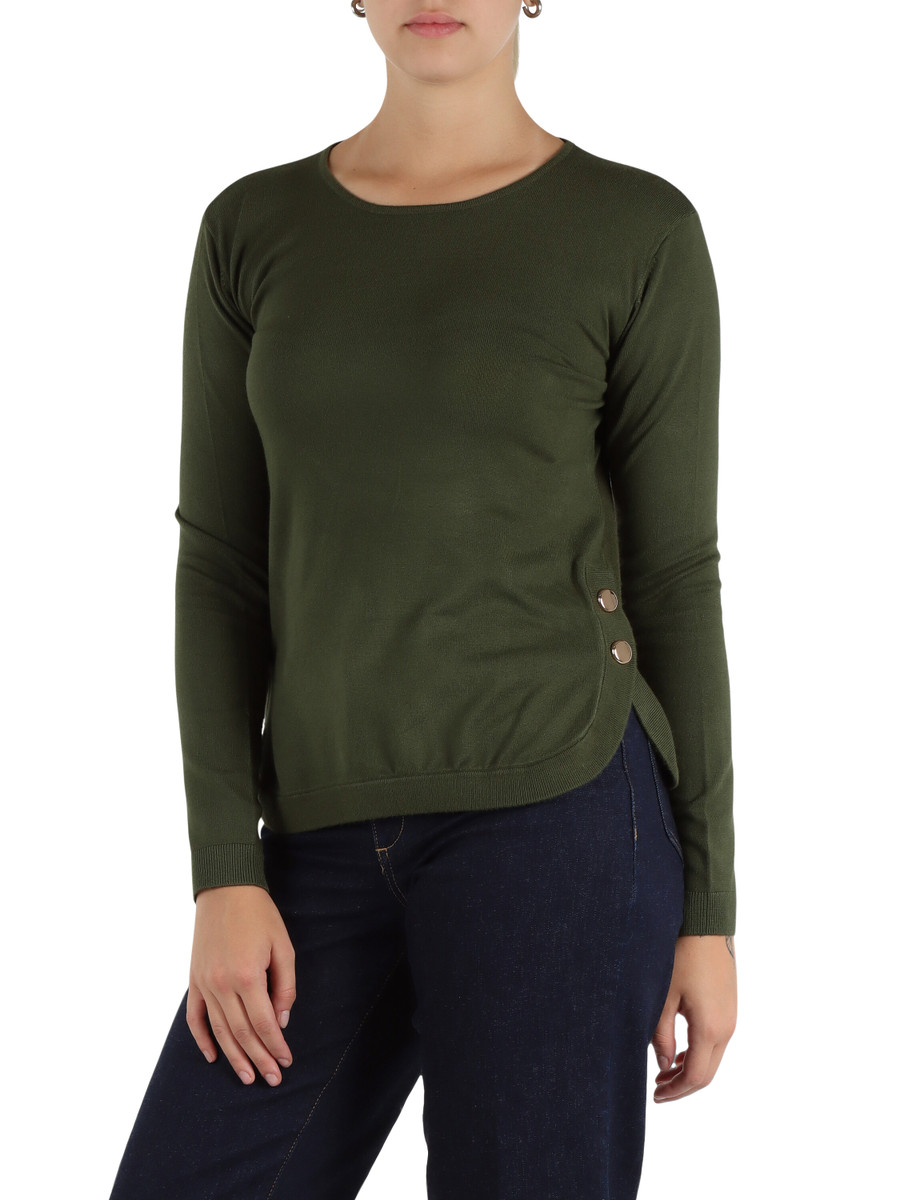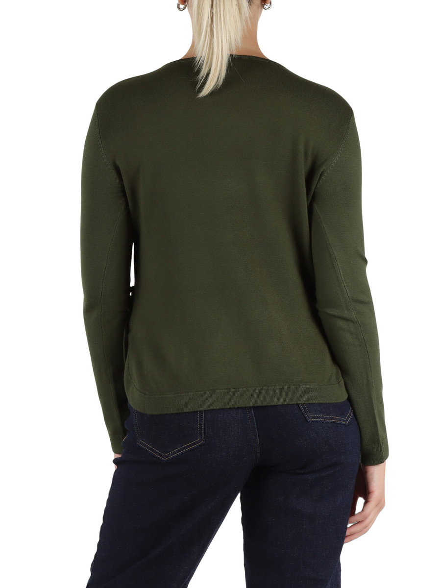 Maglia Pinolo verdex di Emme Marella. Maglia a maniche lunghe e scollo a barca con bottoni decorativi dorati sui fianchi. Vestibilità regolare. Materiale morbido e leggero.