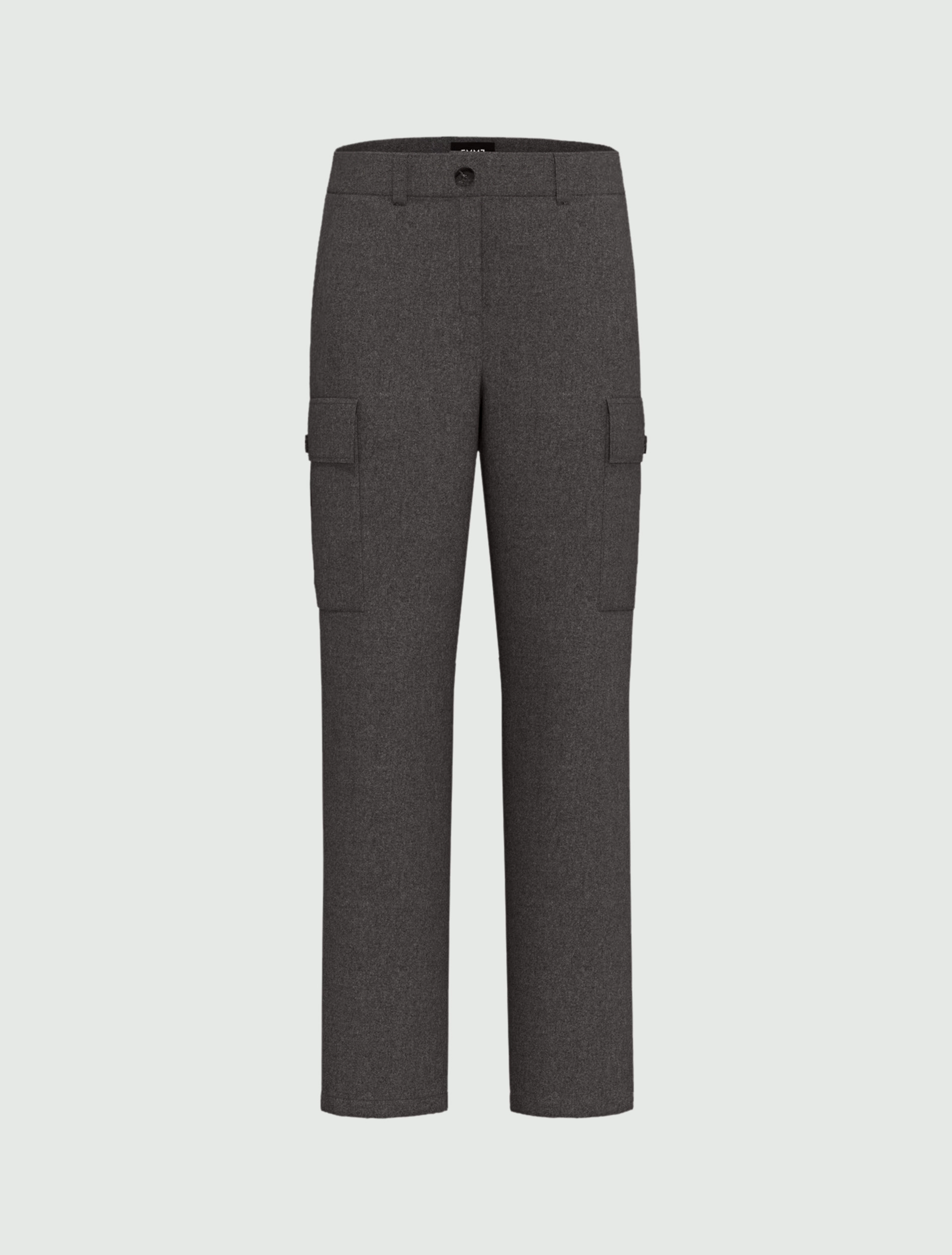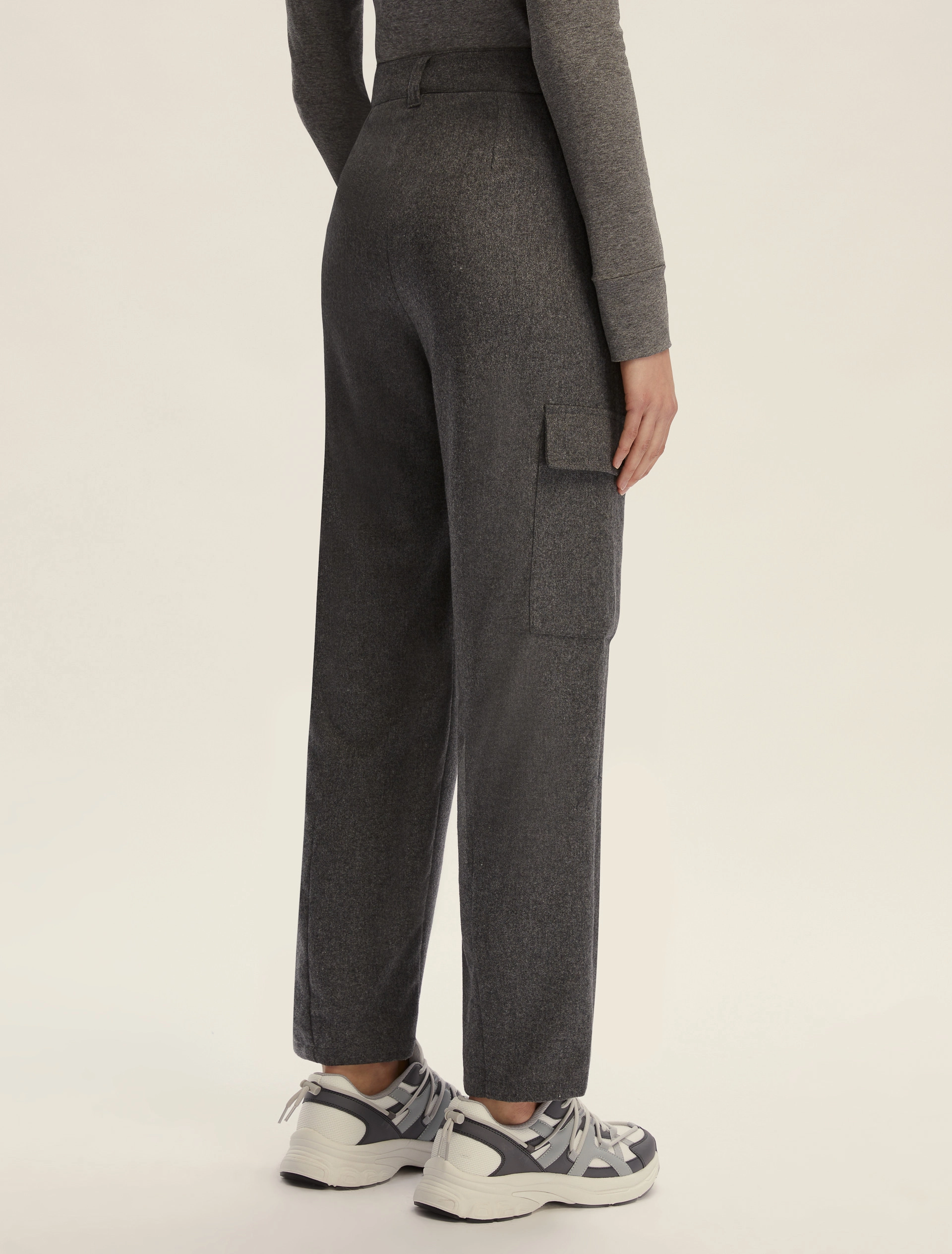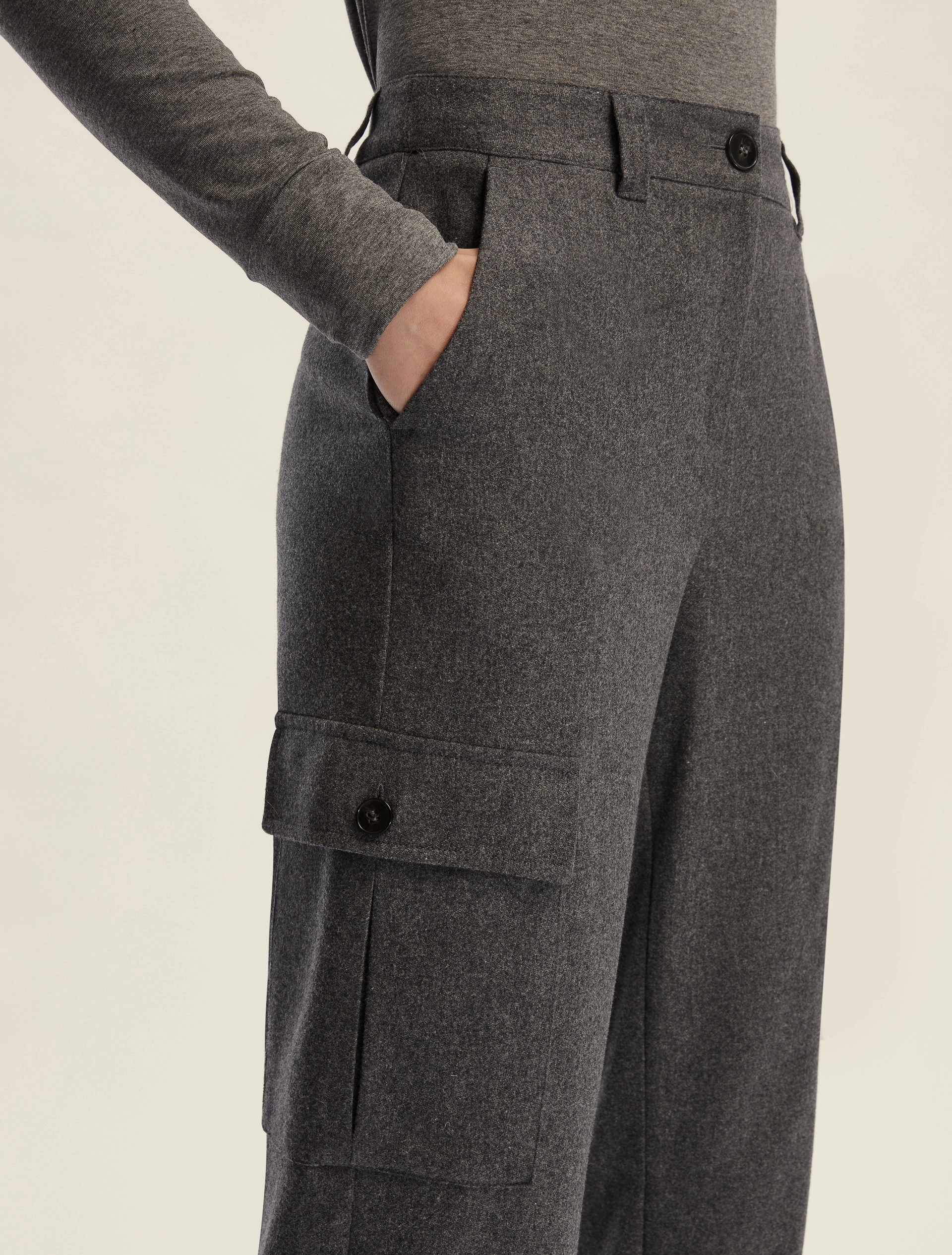 Trasformazione cool del pantalone in flanella leggera, da completare con abbinamenti inediti e femminili. I tasconi laterali aggiungono una nota grintosa e funzionale, che dona carattere ad ogni look.