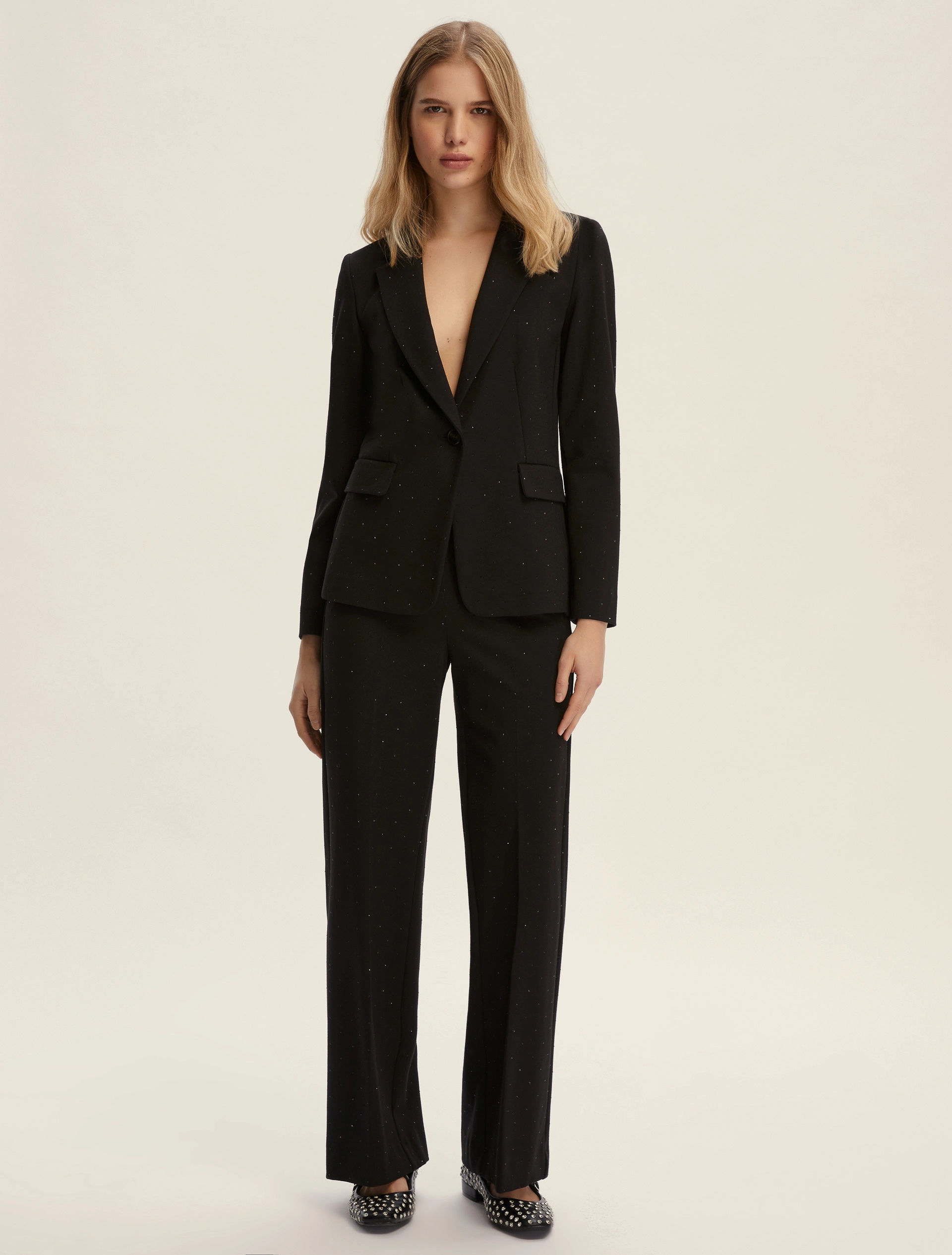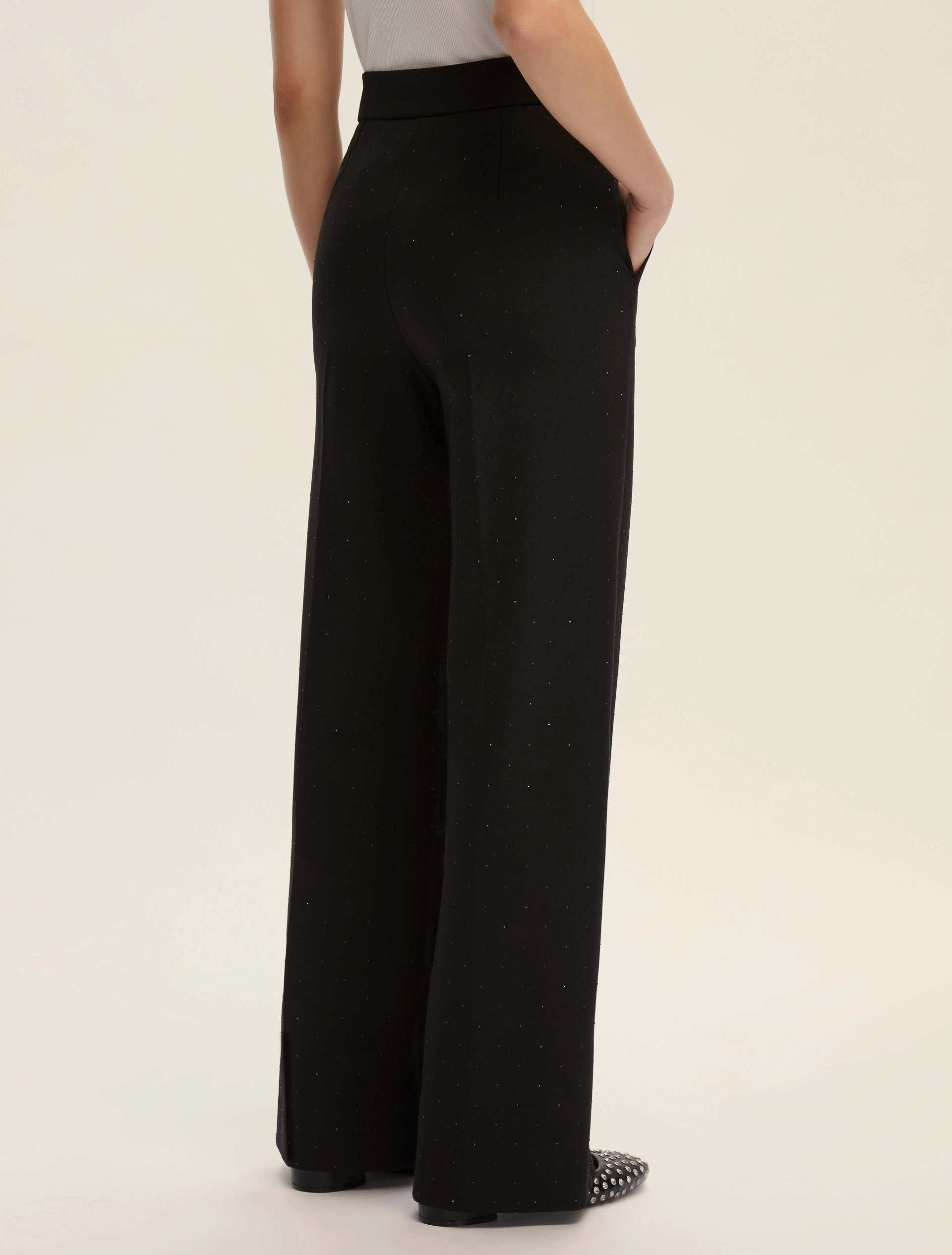 Essenziale con un tocco unexpected: il pantalone in jersey si distingue per le applicazioni che ne valorizzano la linea pulita. Il fit dritto e la piega stirata disegnano una silhouette decisa, da indossare con blazer sartoriali o maglie morbide.
