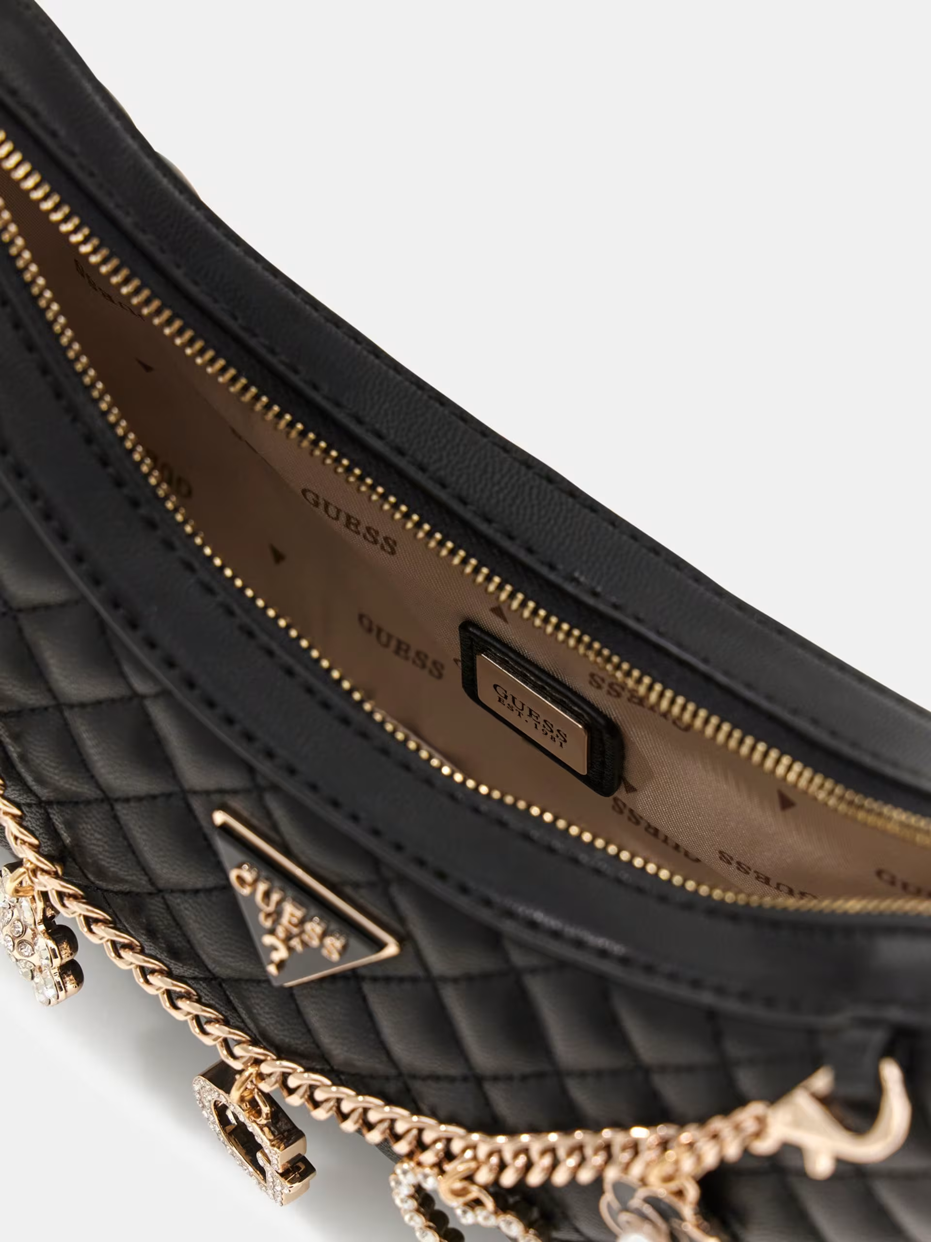 Catena frontale con charm logati e applicazioni gioiello.