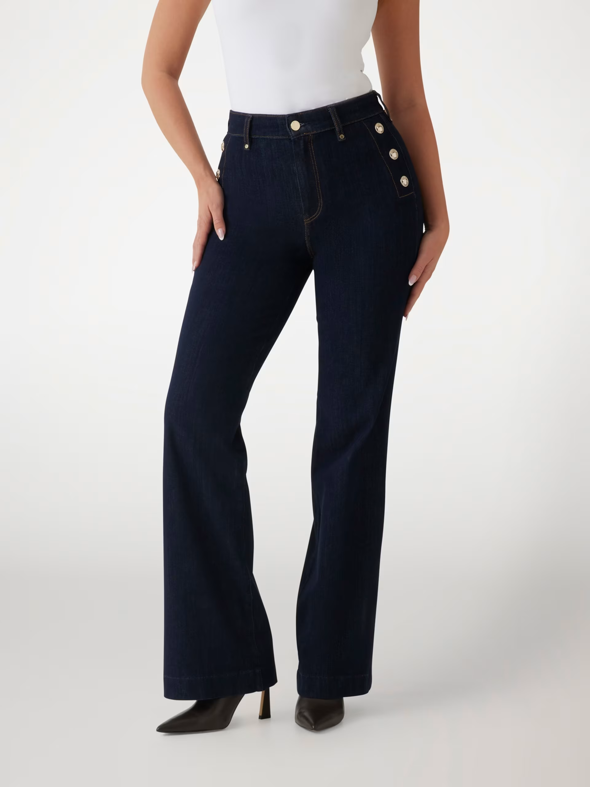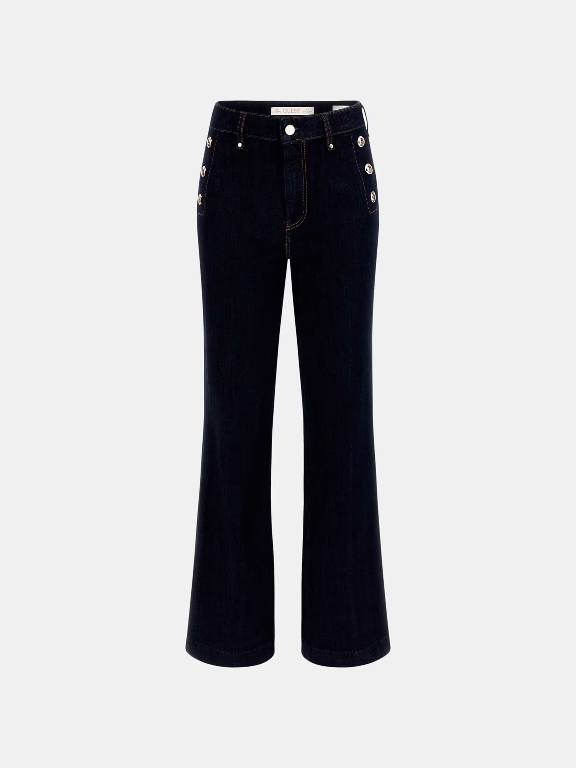 Bottoni decorativi sulle tasche oblique ai lati della parte frontale.
