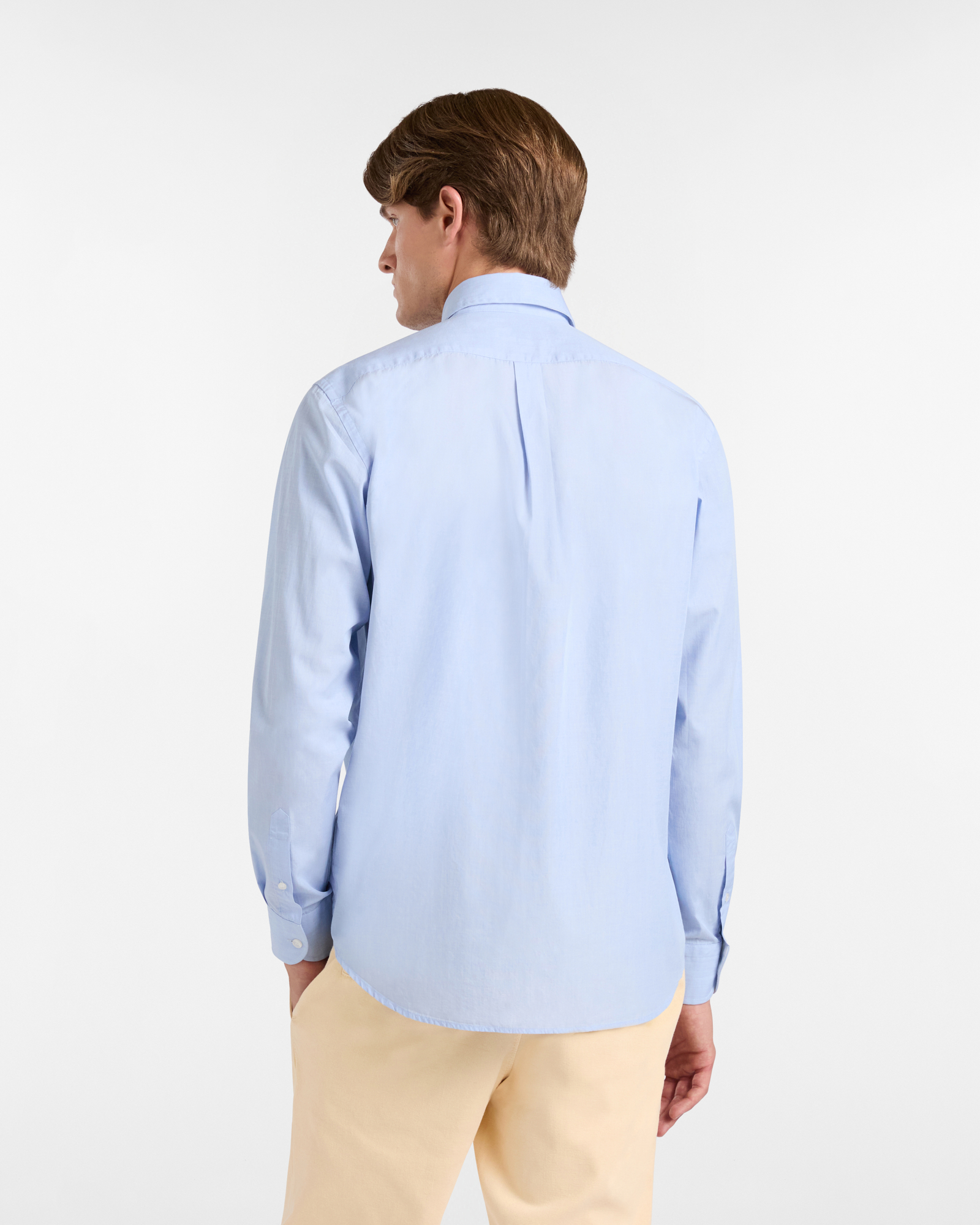 Harmont & Blaine firma una camicia da uomo in leggero cotone fil-à-fil dalle linee pulite ed essenziali e dalle tonalità delicate che diventerà un autentico must-have del vostro guardaroba quotidiano. Il modello è presentato in una confortevole vestibilità regular, ed è dotato di un pratico collo con bottoncini, mentre il tocco di stile del brand è dato dall'iconico bassotto ricamato sul petto e dagli interni a contrasto nei polsi e nel sottocollo.