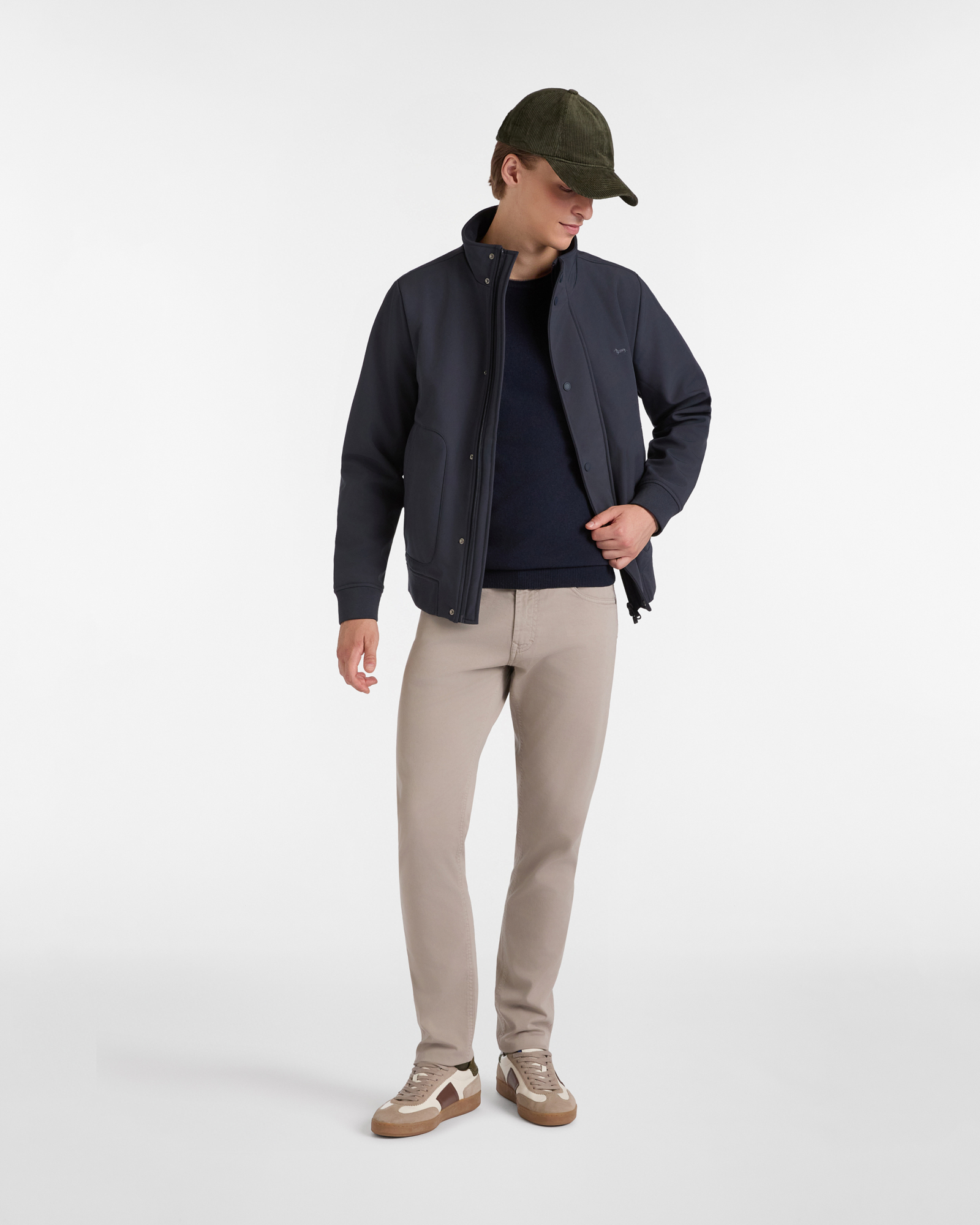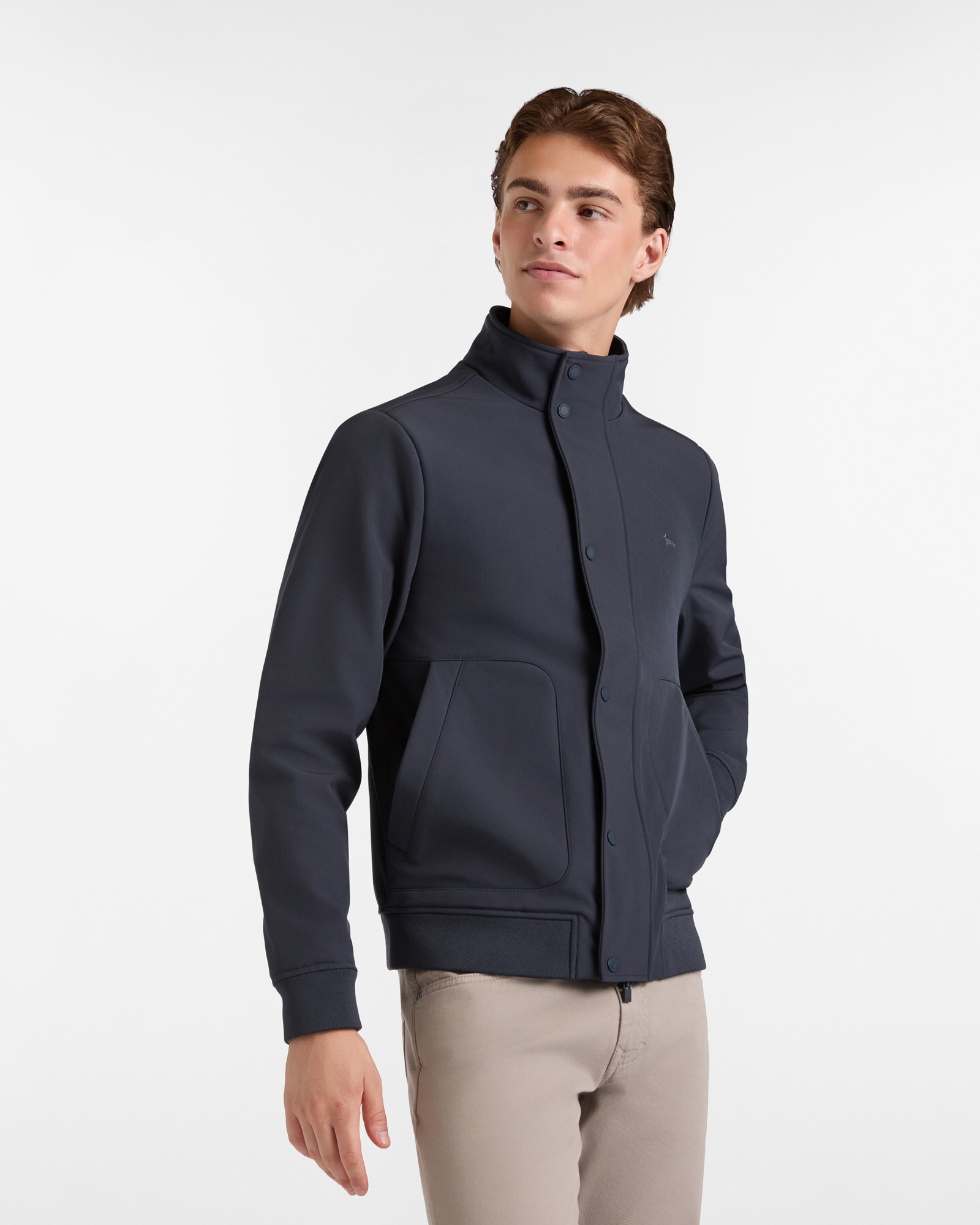 Elegante e pratico al tempo stesso, questo giubbotto da uomo firmato Harmont & Blaine è destinato a diventare il vostro inseparabile compagno per affrontare la stagione fredda grazie alla composizione in softshell accoppiato a un interno in caldo pile. Il modello è dotato di un collo in piedi, di due ampie tasche laterali, di una tasca interna con zip, di polsini e fondo in tessuto, e di una chiusura frontale con zip nascosta e bottoni. A completare il capo non mancano i dettagli personalizzati in tono, rappresentati dal bassotto Blaine ricamato sul petto e dalla fettuccia logata sul retro.