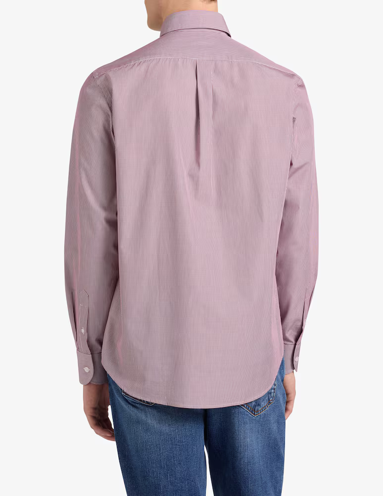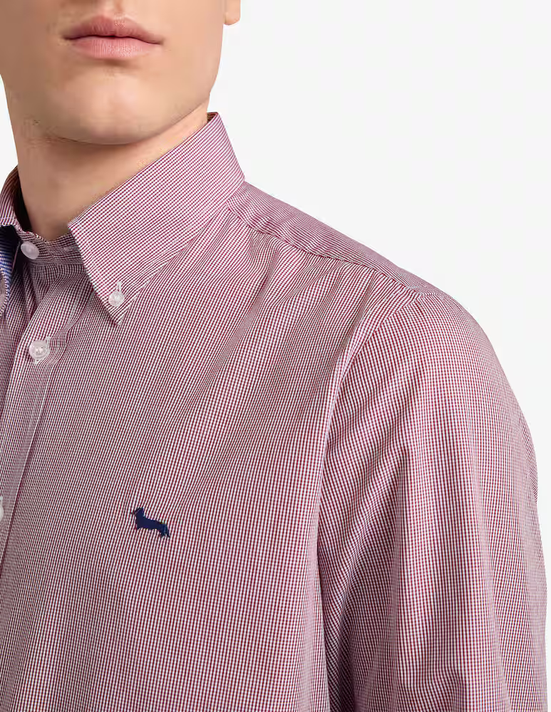 Harmont & Blaine firma una camicia da uomo in puro cotone tinto in filo all'insegna della versatilità, dove il tocco di brio è dato dal motivo a quadri all over e dall'iconico bassotto ricamato a contrasto sul petto. Il capo, presentato in una comoda vestibilità regular, è rifinito dal pratico collo con bottoncini e dal raffinato carré con sfondo piega sul retro, mentre il tessuto a contrasto nel sottocollo e all'interno dei polsi è un ulteriore omaggio all'estro creativo che da sempre contraddistingue il brand