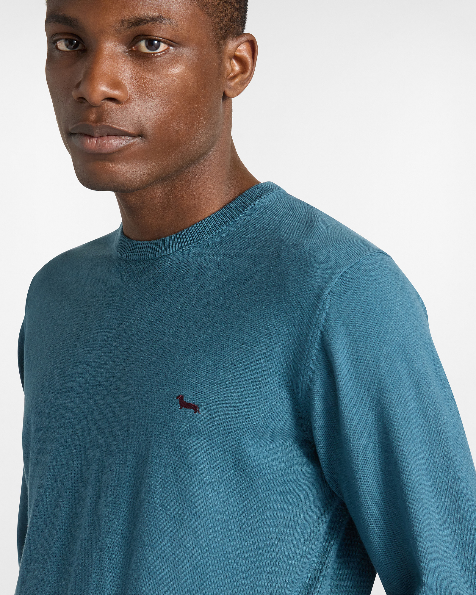 Questo pullover girocollo da uomo firmato Harmont & Blaine diventerà il vostro inseparabile compagno per gli outfit quotidiani della stagione fredda grazie alla versatile tinta unita e alla morbida e calda composizione in lana e cotone. Il capo, dalla confortevole vestibilità regular, presenta collo, polsini e fondo capo lavorati a costine, mentre l'immancabile tocco di brio è dato dall'iconico simbolo del brand: il bassotto, che spunta sotto forma di ricamo a contrasto sul petto.