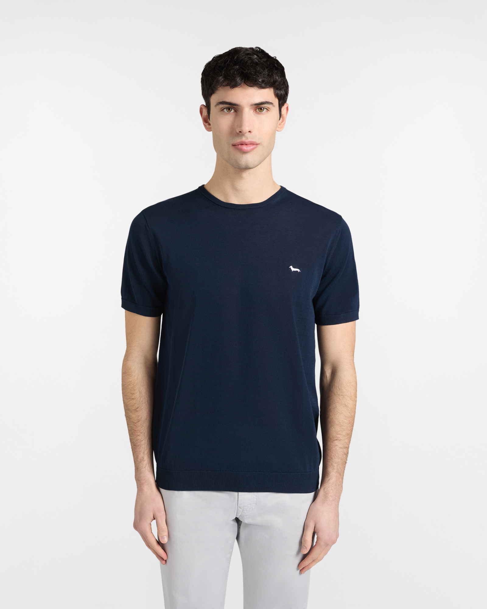 Perfetta per il tempo libero, questa t-shirt uomo in maglia è un capo essenziale per il tuo guardaroba. Realizzata in puro cotone, offre un comfort eccezionale e una vestibilità regular. Bassotto ricamato a contrasto lato cuore.
