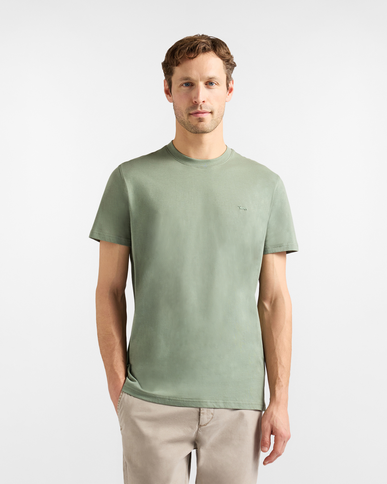 Le linee essenziali e pulite di questa T-shirt girocollo da uomo in jersey di puro cotone la rendono un capo versatile e funzionale, perfetto per creare diverse combinazioni di look. Il modello a mezza manica, presentato in una comoda vestibilità regular per assicurare massima libertà di movimento, è rifinito dall'iconico bassotto stampato in 3D in tono sul petto, che conferisce al design il tocco di personalità tipico di Harmont & Blaine.