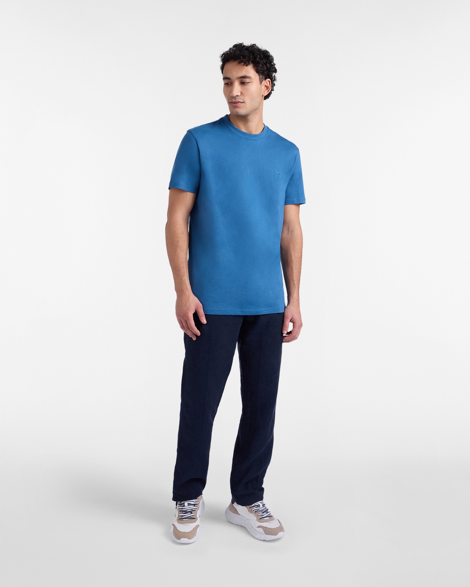 Le linee essenziali e pulite di questa T-shirt girocollo da uomo in jersey di puro cotone la rendono un capo versatile e funzionale, perfetto per creare diverse combinazioni di look. Il modello a mezza manica, presentato in una comoda vestibilità regular per assicurare massima libertà di movimento, è rifinito dall'iconico bassotto stampato in 3D in tono sul petto, che conferisce al design il tocco di personalità tipico di Harmont & Blaine.