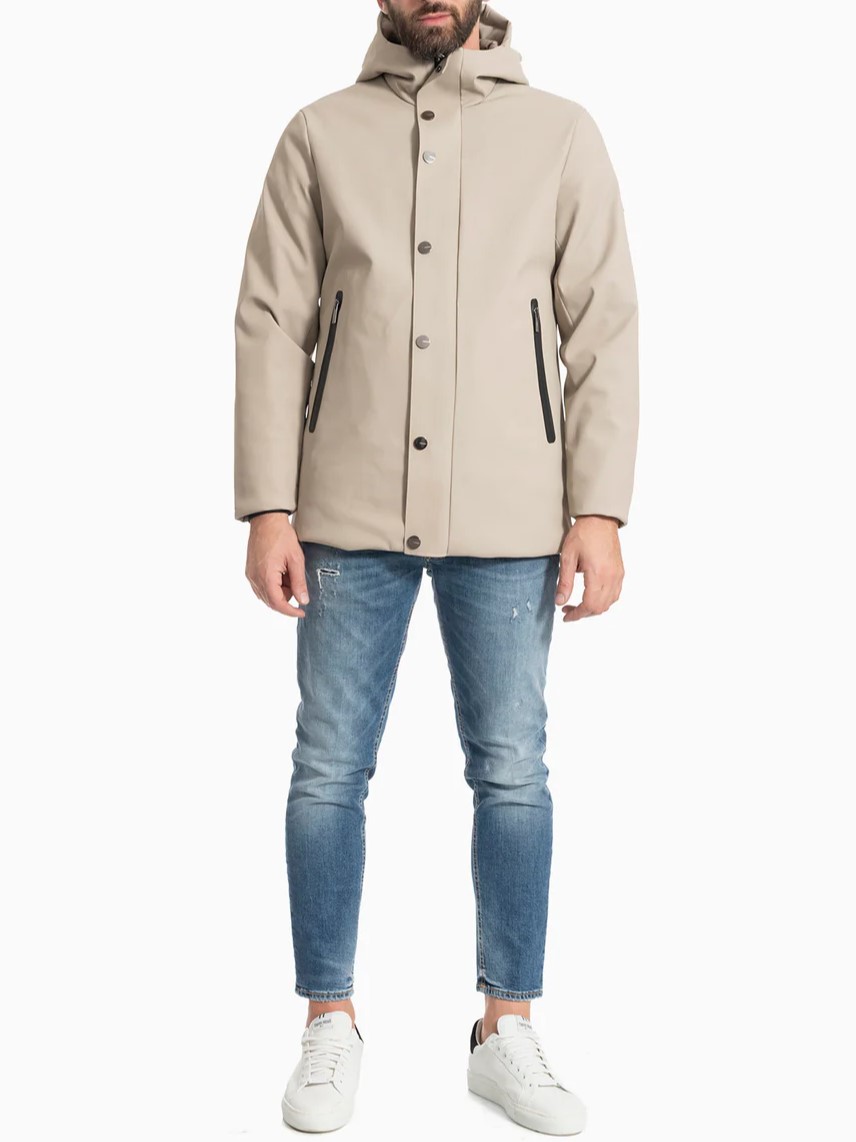 Questo capospalla è stato realizzato rispettando i migliori standard qualitativi sul mercato. L'imbottitura è fatta di vera piuma d'anatra selezionata dal nostro team di esperti. Il fitting è altamente performante per assecondare al meglio ogni tipo di movimento, garantendo il massimo comfort. Resistenza alle temperature rigide ed agli agenti atmosferici avversi assicurata. Presenza tasche interne ed esterne, cappuccio e chiusura lampo con bottoni.