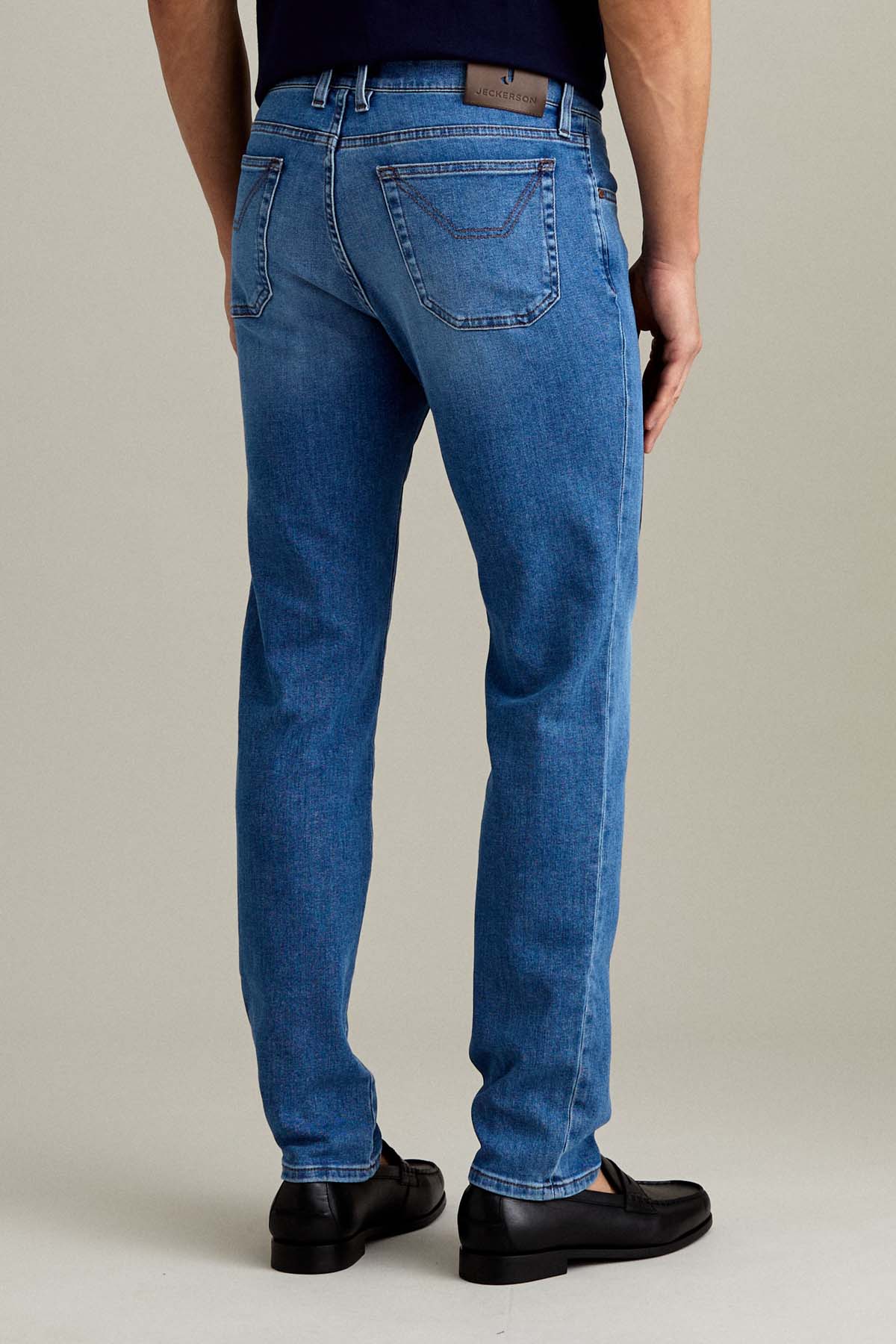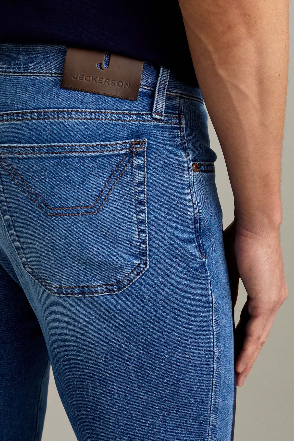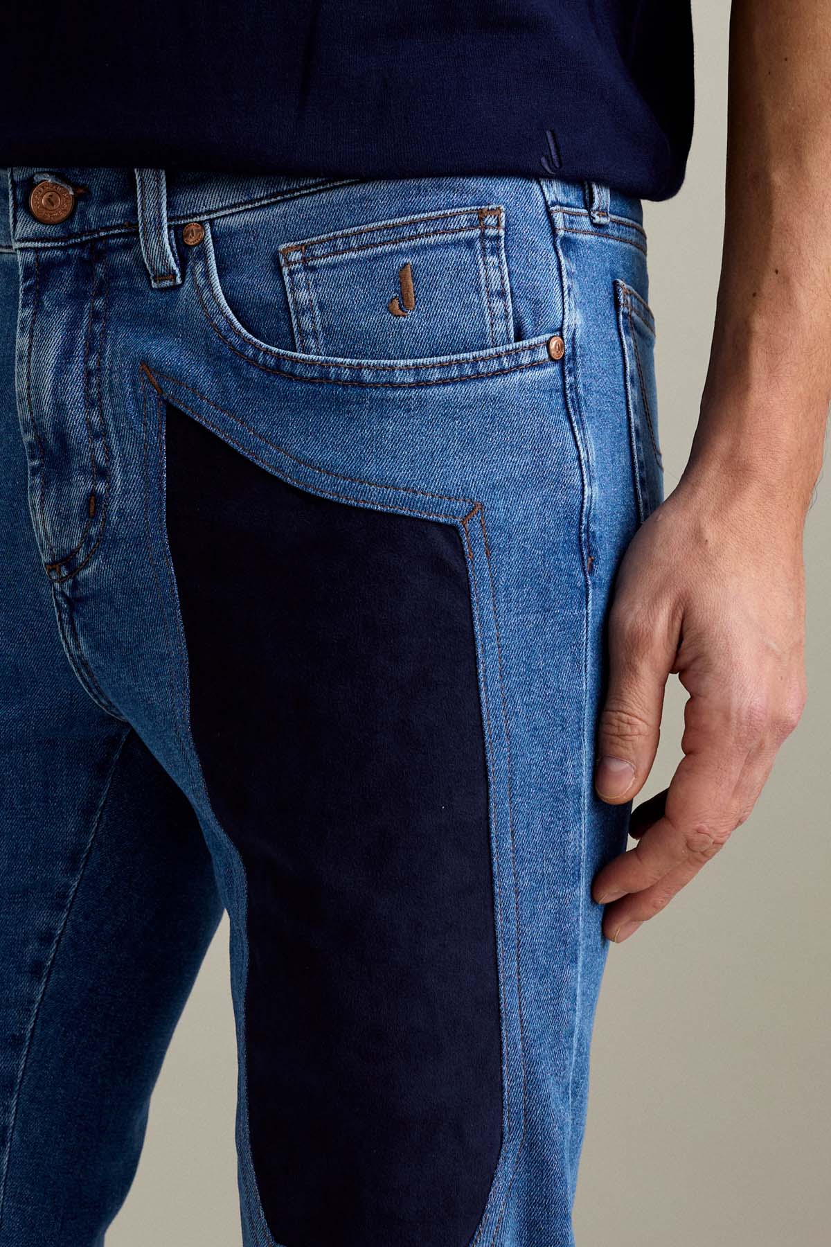 Il pantalone John 5 tasche slim fit con iconico inserto toppa in Alcantara interpreta uno stile moderno ed essenziale, con una vestibilità asciutta e confortevole. Realizzato in denim base blu super comfort, presenta un lavaggio di media intensità con leggere schiariture su fianchi, tasche e fondo gamba, per un look autentico e contemporaneo.