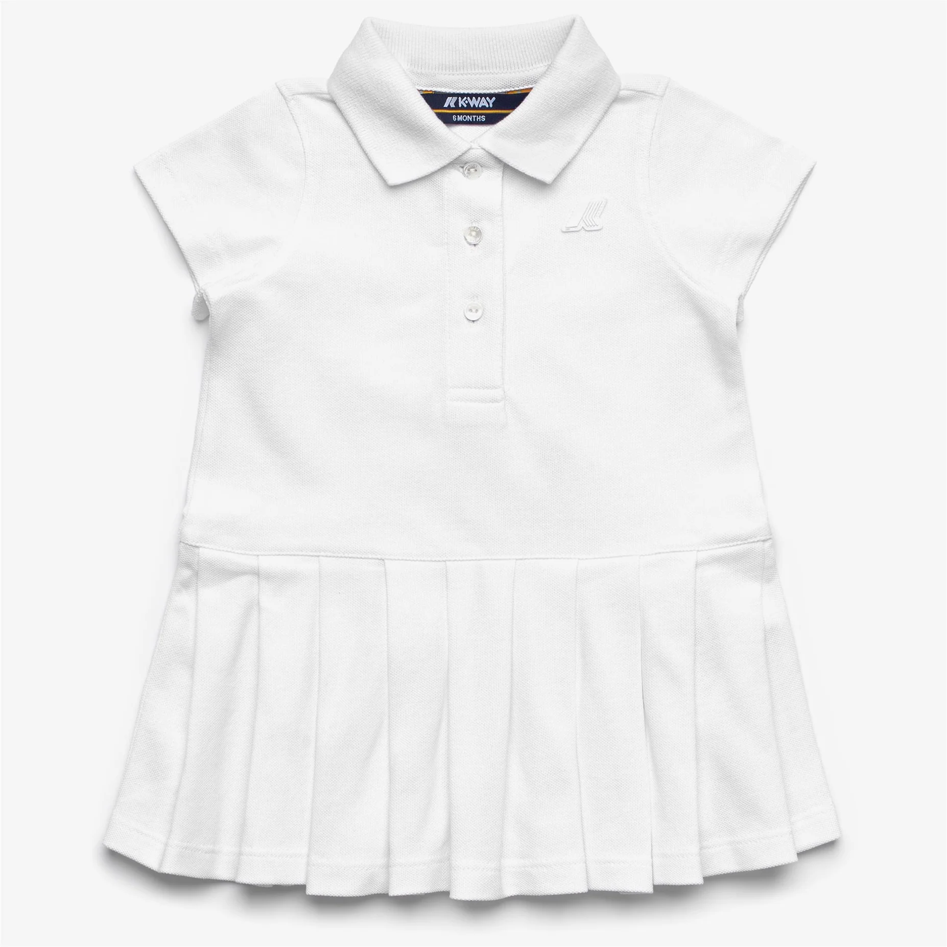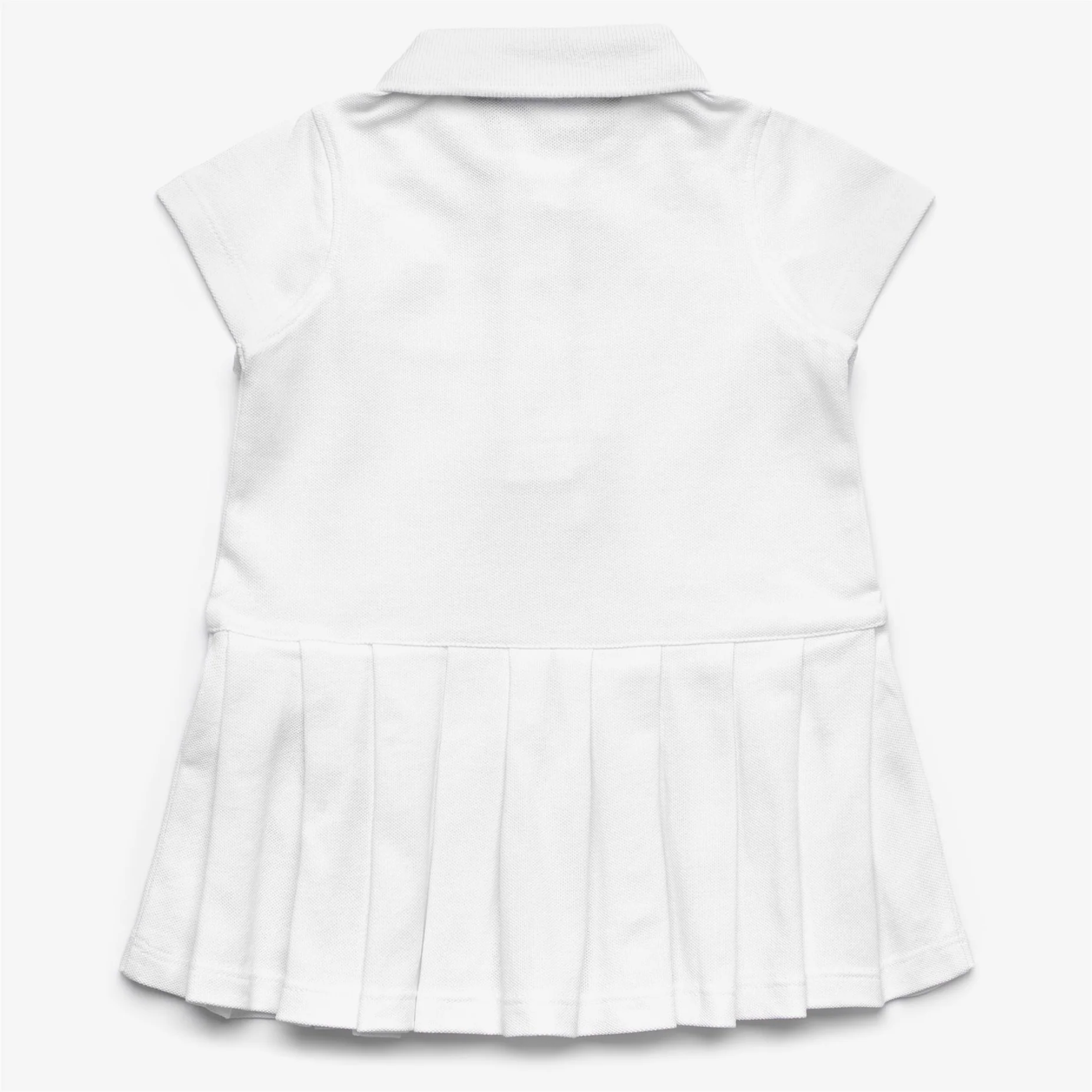 Dollie è un abito corto per neonata e bimba ispirato allabbigliamento da tennis, un capo sportivo e romantico per completare il guardaroba estivo dei più piccoli. Realizzato in piqué di cotone fresco e traspirante, ha una linea svasata con maniche corte, colletto a polo e gonna a pieghe.
