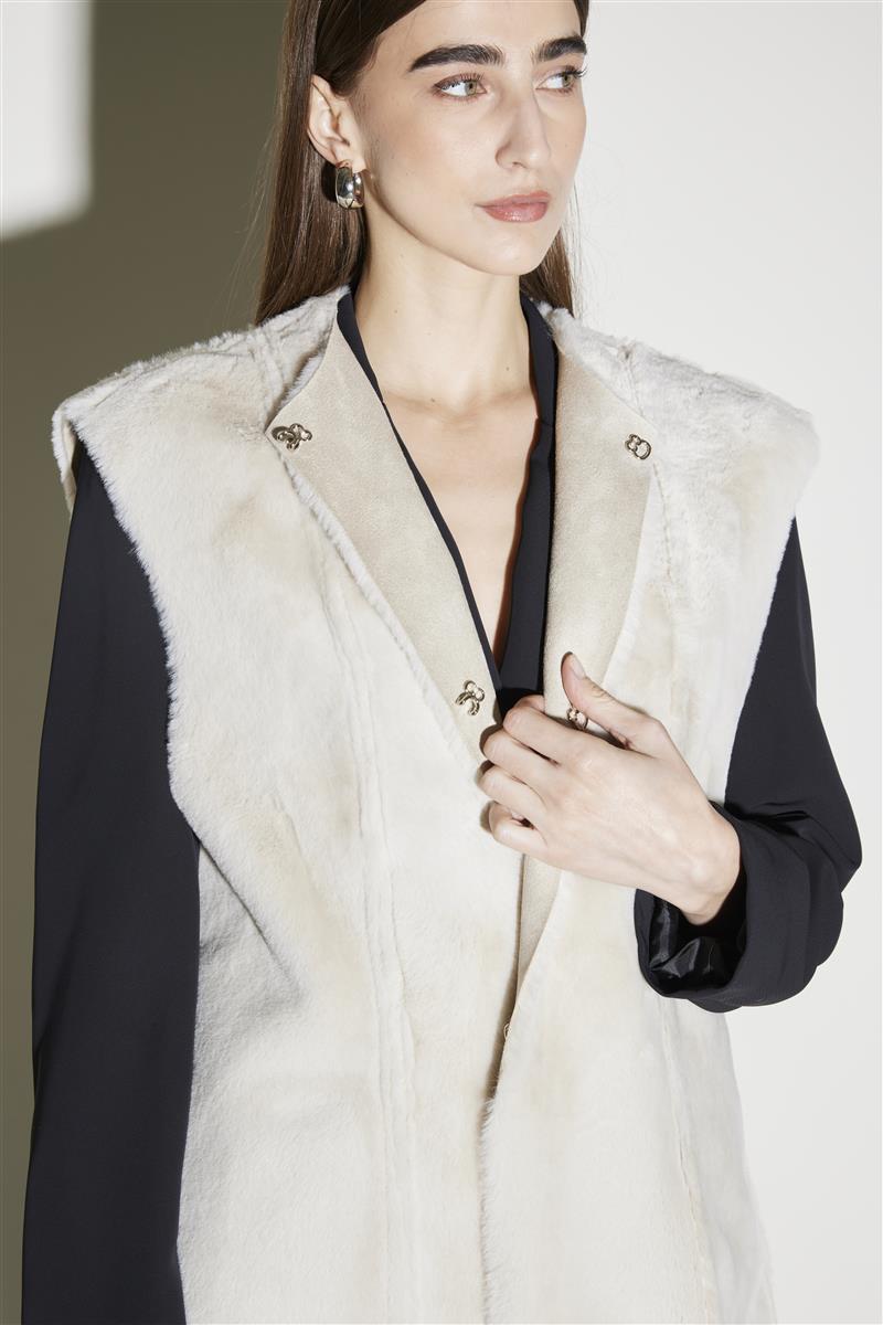 Gilet lungo reversibile in montone sintetico