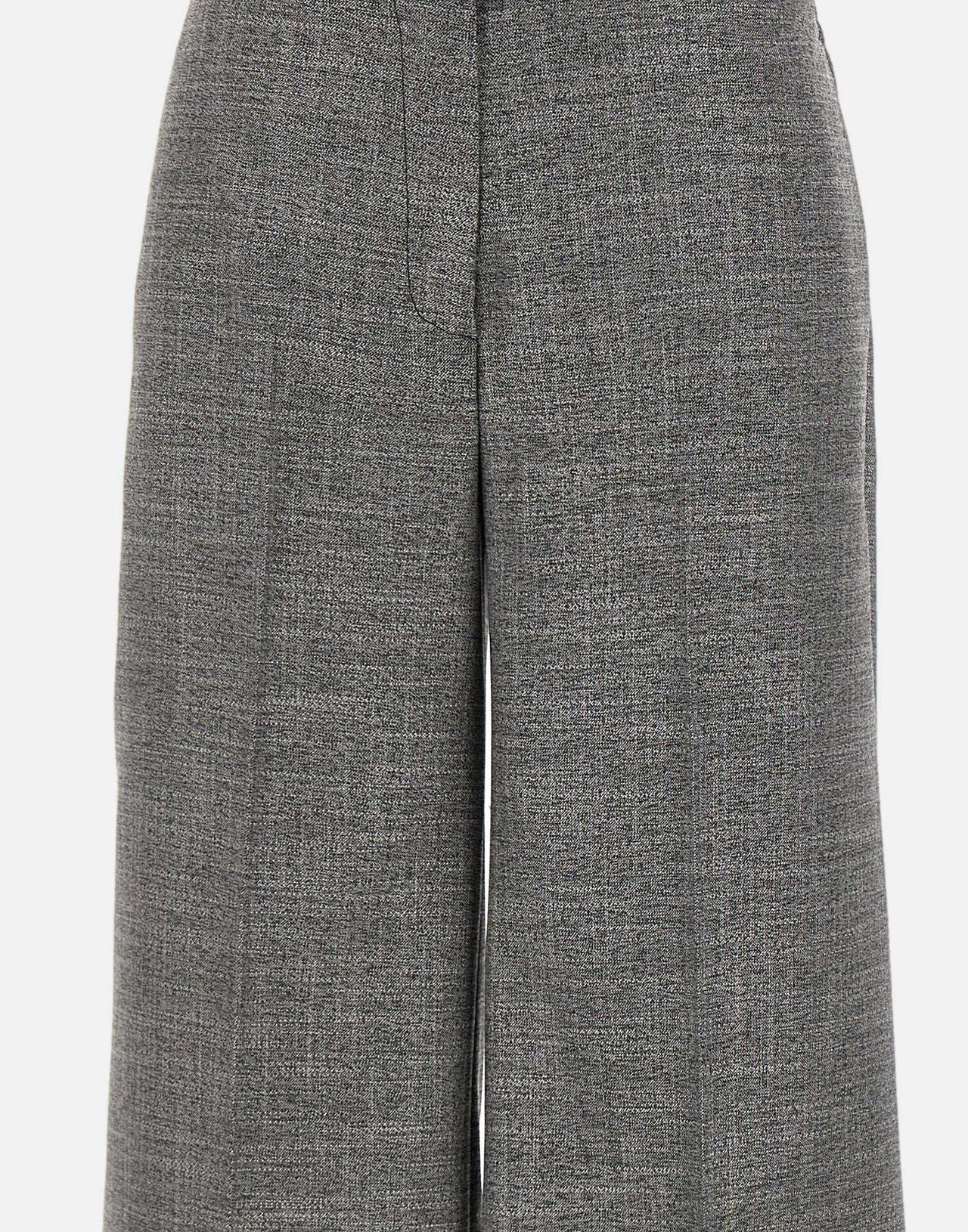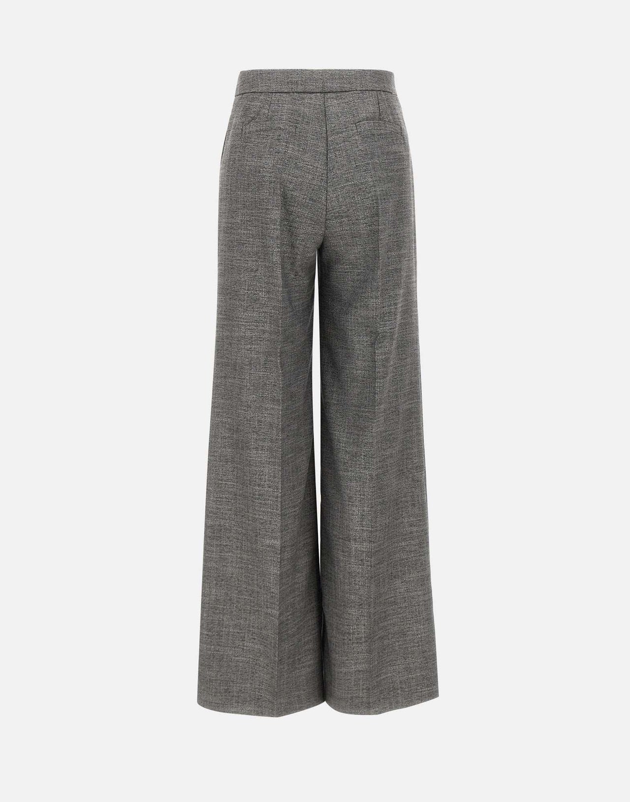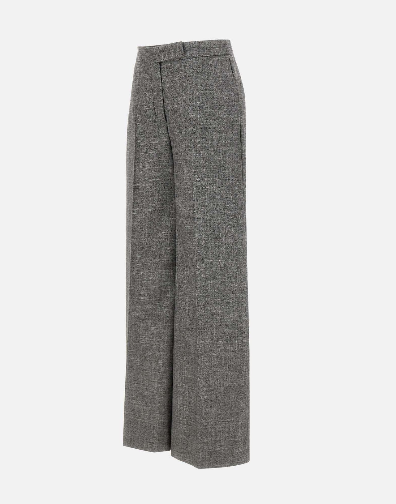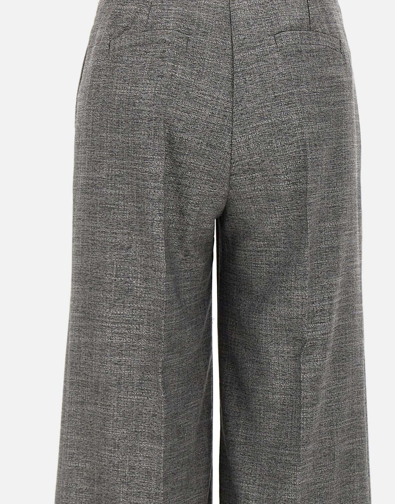 Pantaloni Kaos in misto viscosa stretch, proposti in colore nero. Dotati di chiusura con gancetto e zip, tasche laterali a filo e tasche posteriori, presentano piega stirata e gamba wide con fondo da 30 cm, perfetta per un look elegante e contemporaneo. Regular fit. Made in Italy.