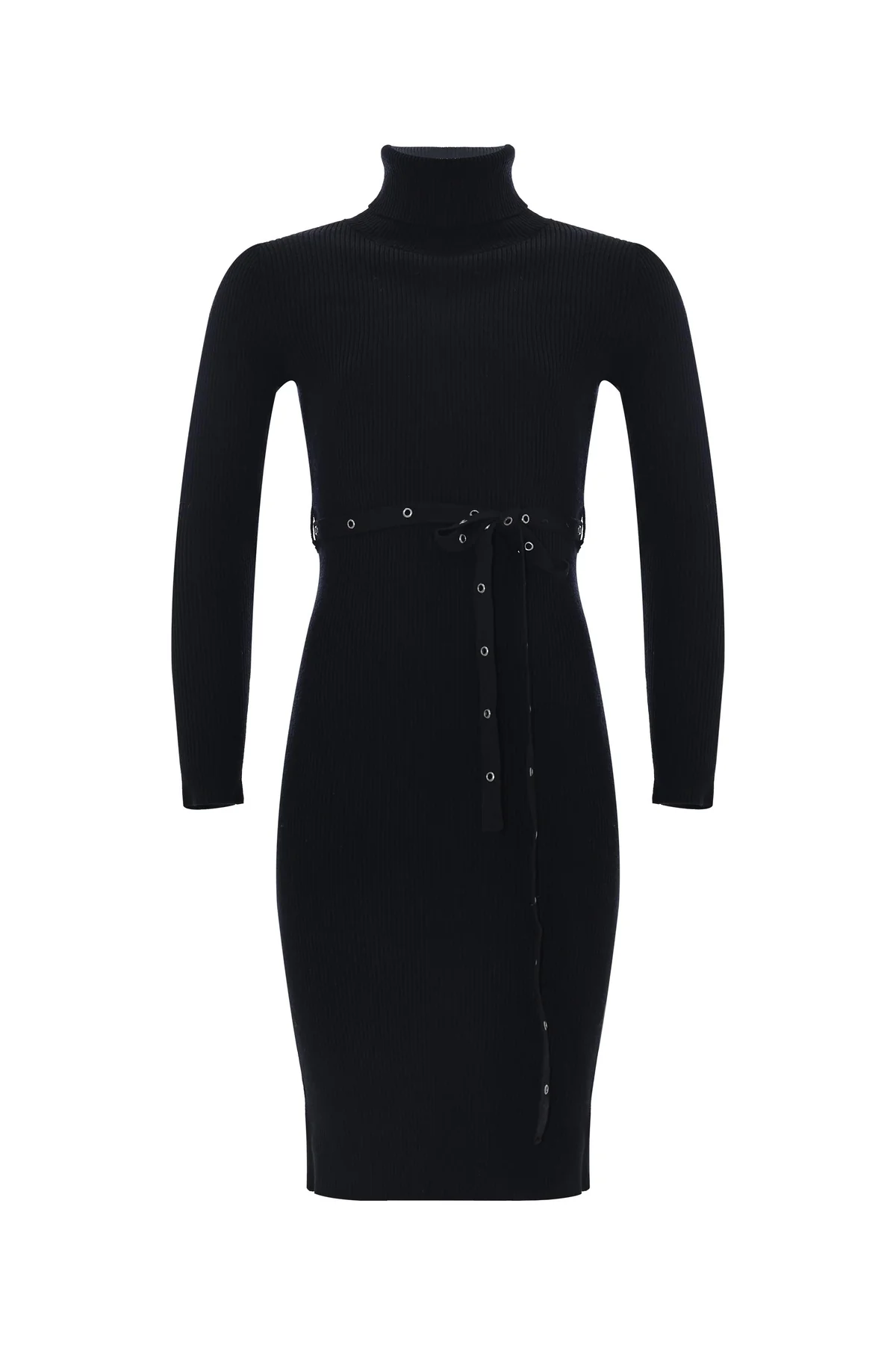 Abito in maglia a collo alto con linea aderente e maniche lunghe. La cintura con occhielli definisce la figura, valorizzando il punto vita. Elegante e confortevole, è perfetto per creare outfit moderni e versatili.