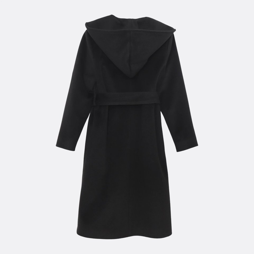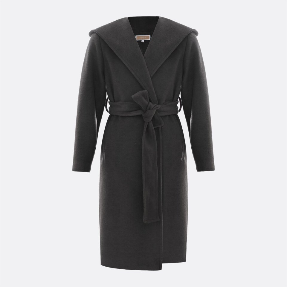 Elegante cappotto impreziosito da un ampio collo a scialle e cintura coordinata da annodare in vita. La linea morbida e le tasche inserite nei fianchi rendono questo capo un must-have raffinato, perfetto per completare qualsiasi outfit invernale.