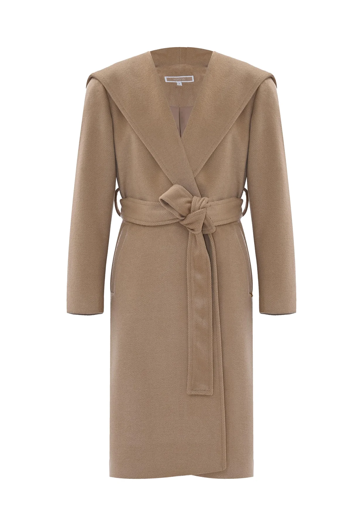 Elegante cappotto impreziosito da un ampio collo a scialle e cintura coordinata da annodare in vita. La linea morbida e le tasche inserite nei fianchi rendono questo capo un must-have raffinato, perfetto per completare qualsiasi outfit invernale.