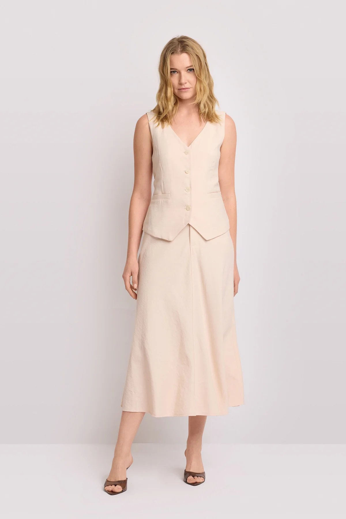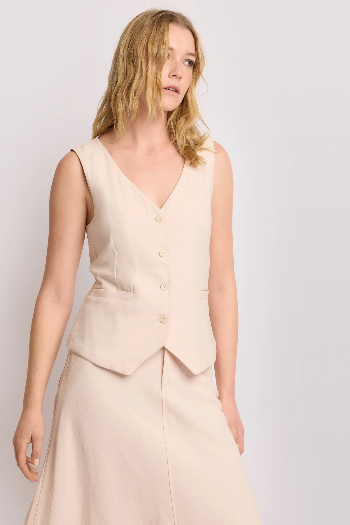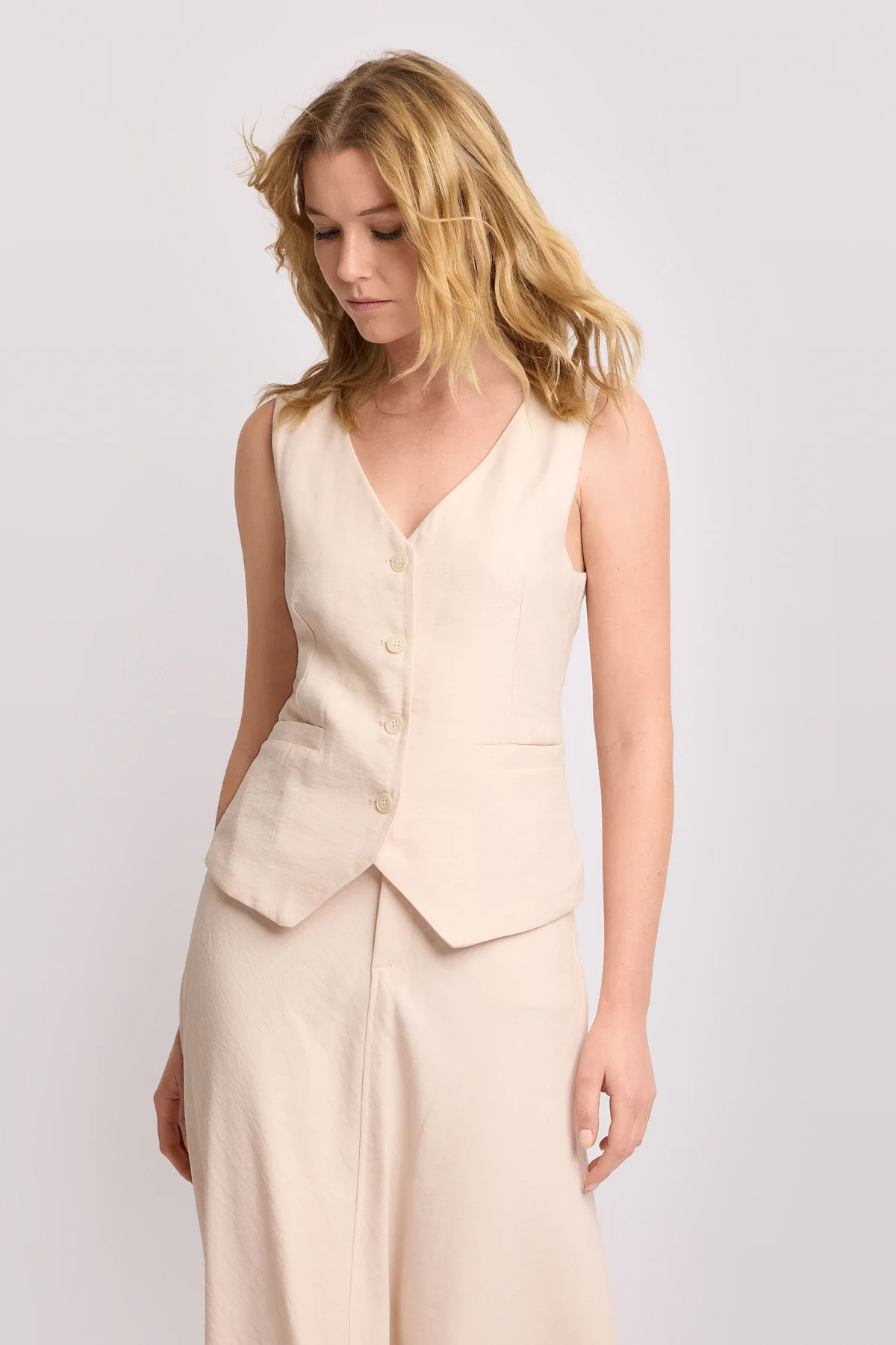 Linea strutturata caratterizzata da una chiusura frontale a quattro bottoni coordinati.