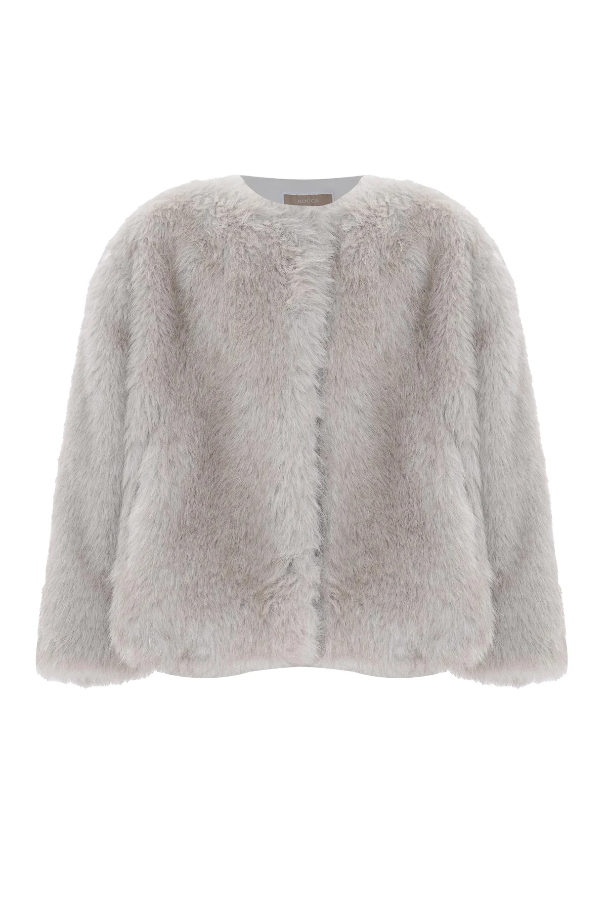 Giubbotto in tessuto effetto pelliccia con scollo tondo e linea dritta per un look minimal e raffinato. La lunghezza valorizza la silhouette, mentre la texture soffice regala un tocco glamour agli outfit invernali.