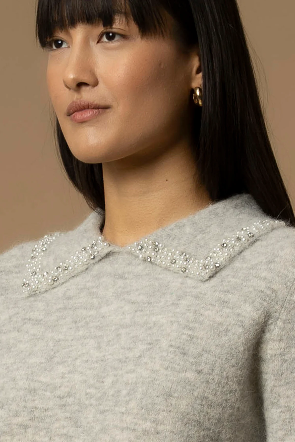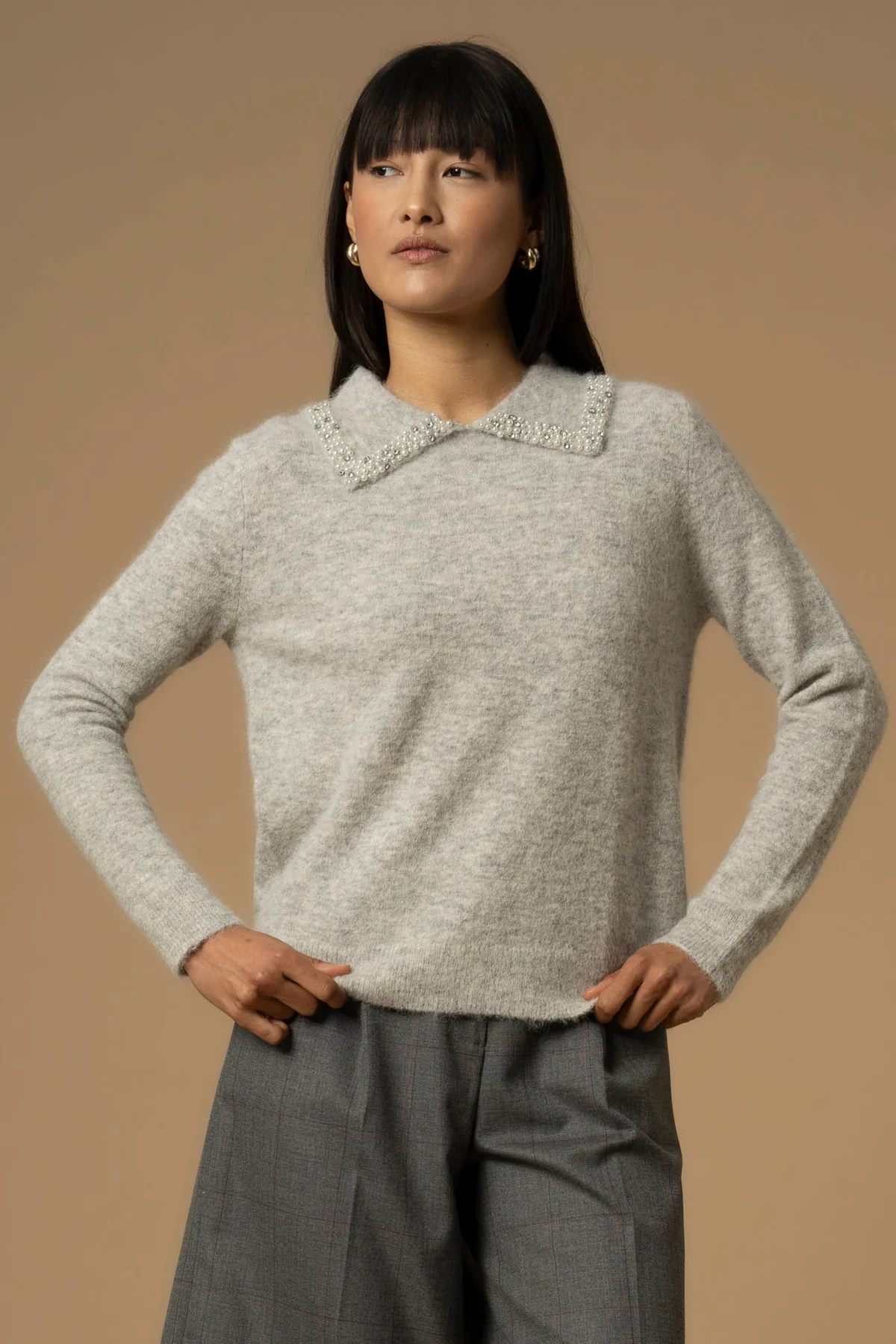 Maglia con colletto a punta e perle - Maglia M/L Aralda