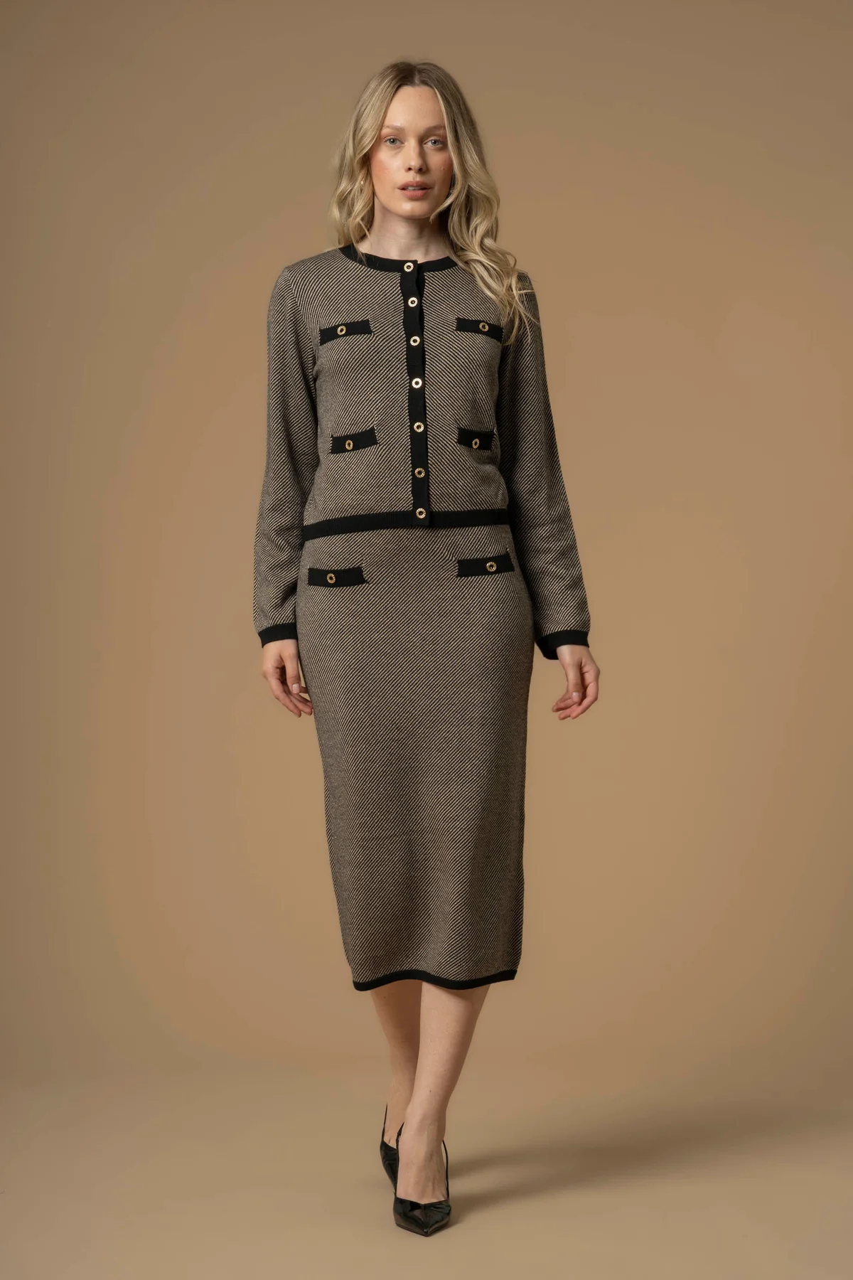 Maglia con tasche e bottoni gioiello