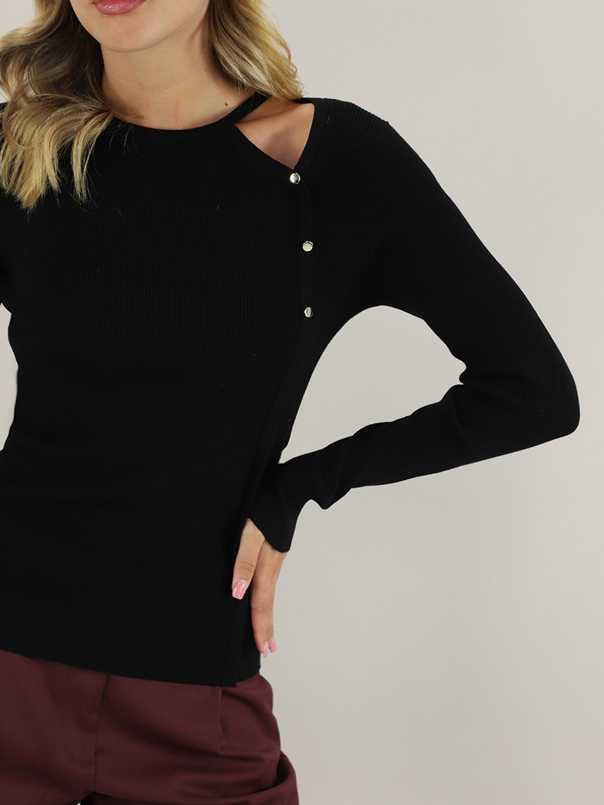 Maglia effetto cut-out con bottoni dorati - Maglia M/L Bredele