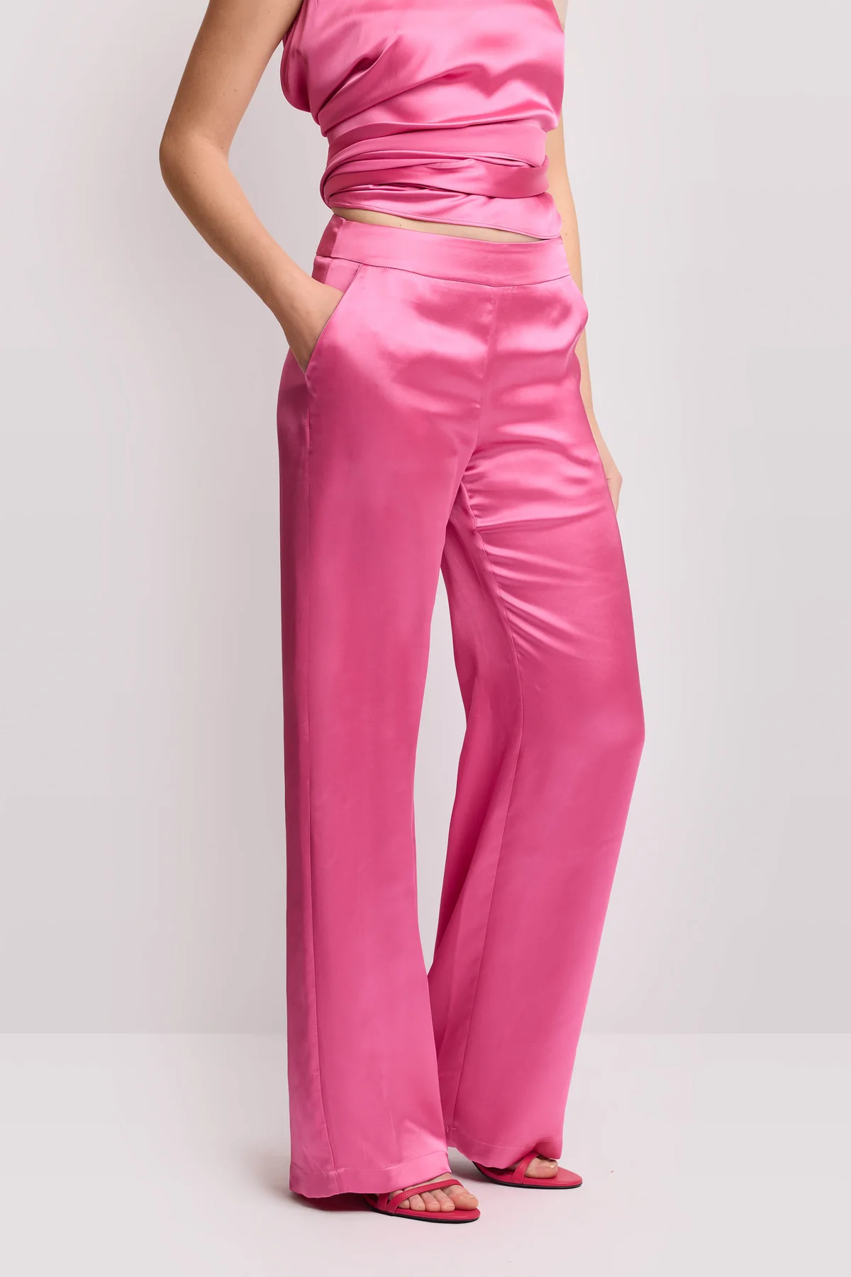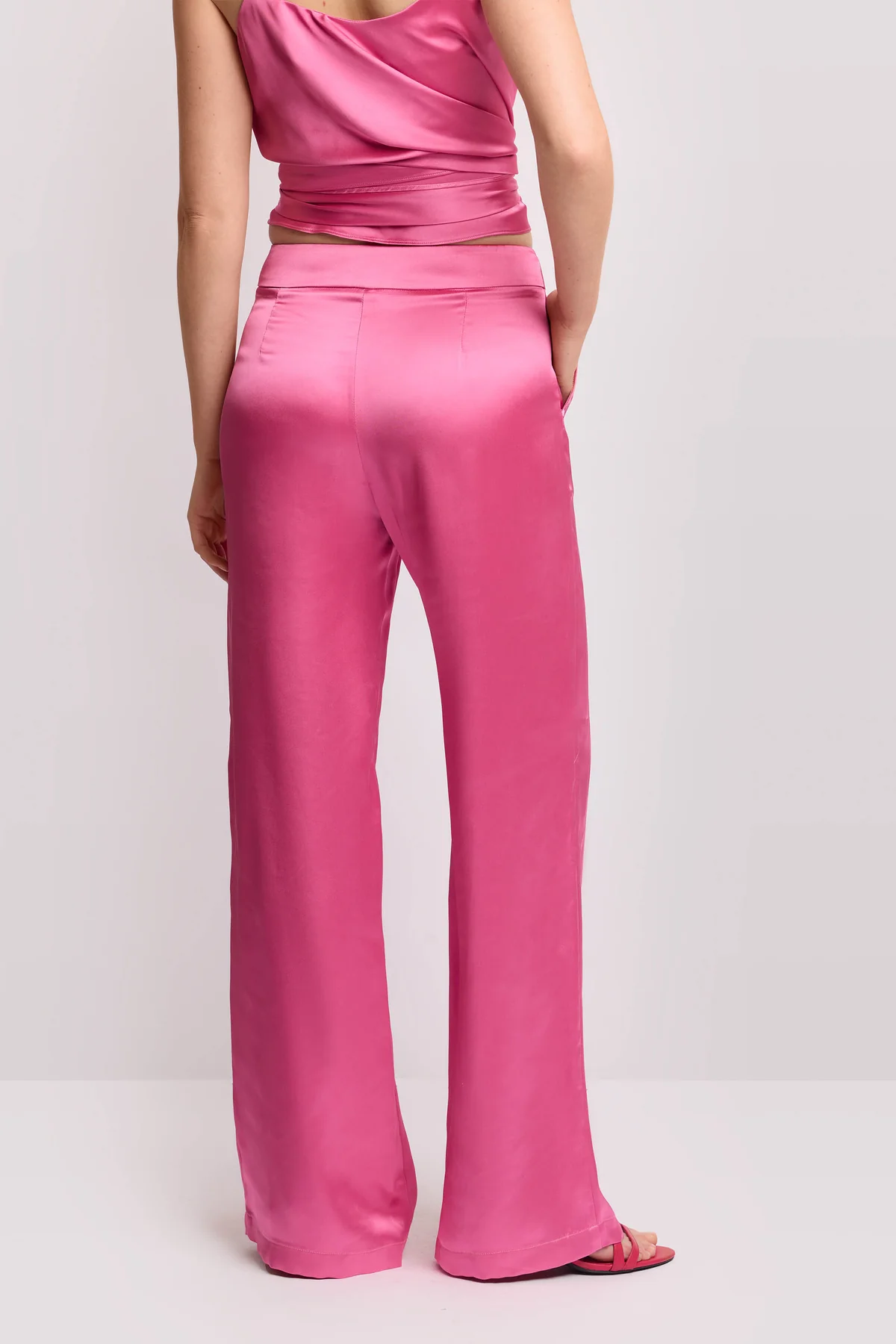 Vita alta definita da una fascia piatta sartoriale, arricchita da tasche laterali inserite nel fianco