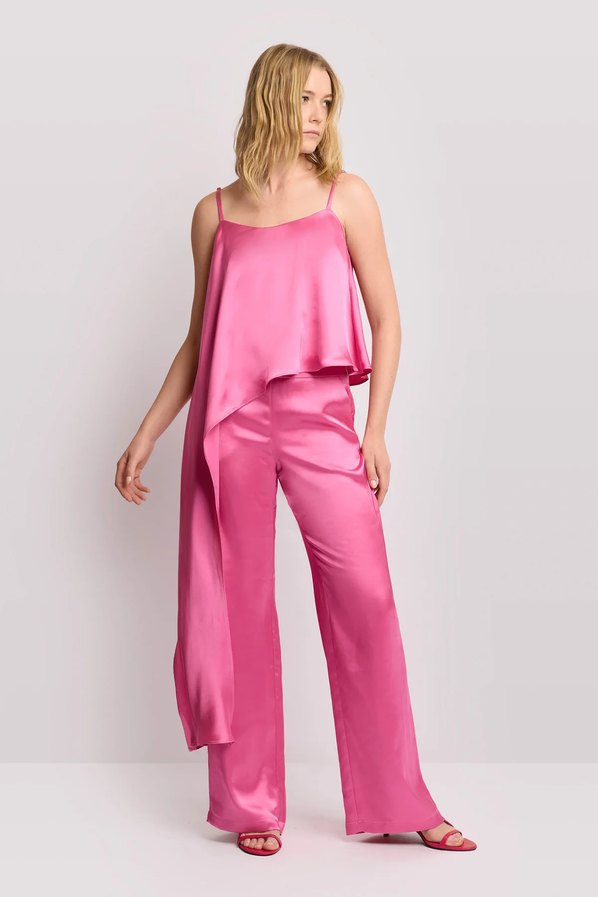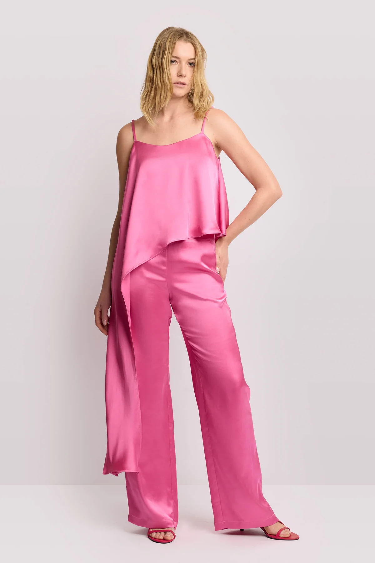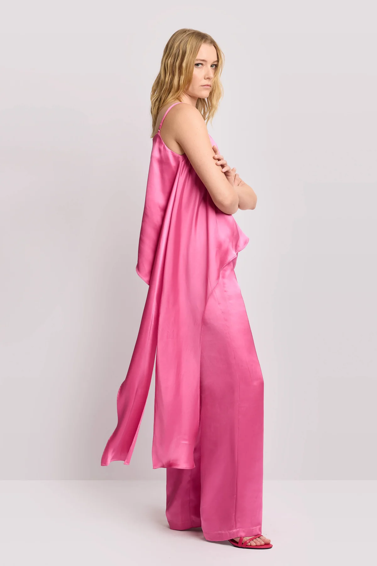 Design scivolato monospalla, impreziosito da un sofisticato drappeggio laterale