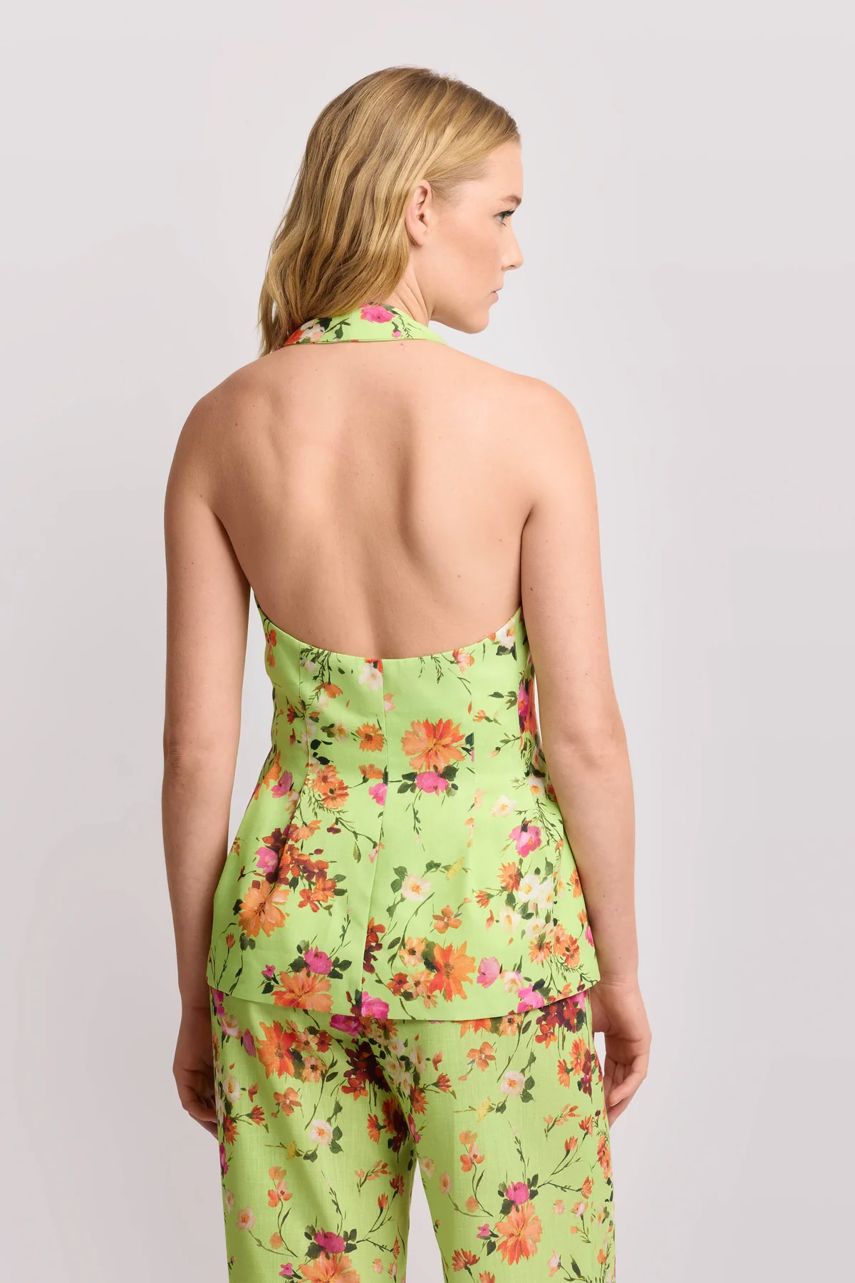 Design con scollo a V, impreziosito da una raffinata stampa floreale e dalla schiena scoperta
